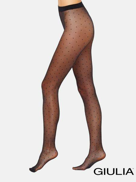 Фантазійні колготки Giulia Amalia 20 (1) з модним принтом у дрібний горошок стануть прекрасним доповненням повсякденного або святкового образу. Колготки щільністю 20 den вирізняються гладкістю й міцністю. Еластичний пояс добре тримається на талії — не дає колготкам перекручуватися та сповзати. Ця модель має ущільнений мисок, пласкі шви та гігієнічну бавовняну ластовицю, що дарує неперевершений комфорт.