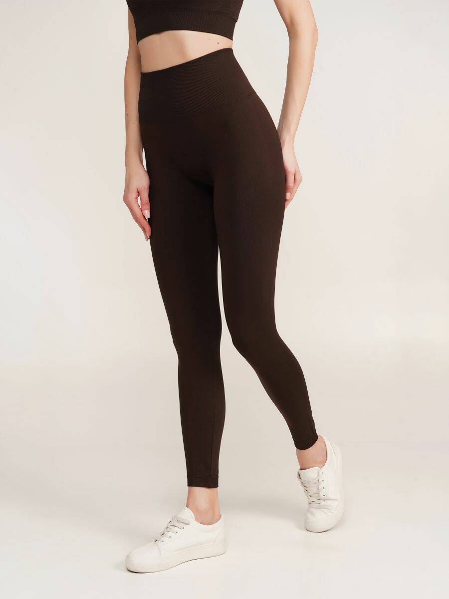 Жіночі безшовні легінси з широким комфортним поясом — ідеальний варіант для йоги, фітнесу, силових тренувань і бігу. Щільна м’яка мікрофібра приємна до тіла та не сковує рухів. Широкий пояс надійно фіксується на талії, забезпечуючи підтримку під час активних занять. Легінси легко поєднуються з безшовними топами в тон.