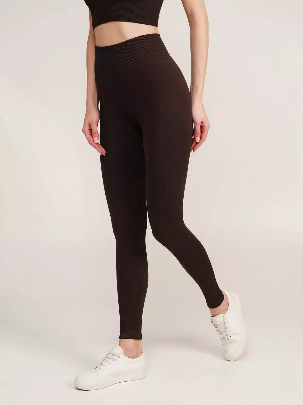 Безшовні легінси з мікрофібри в рубчик Giulia LEGGINGS RIB 02 (NEW) chocolate, S/M