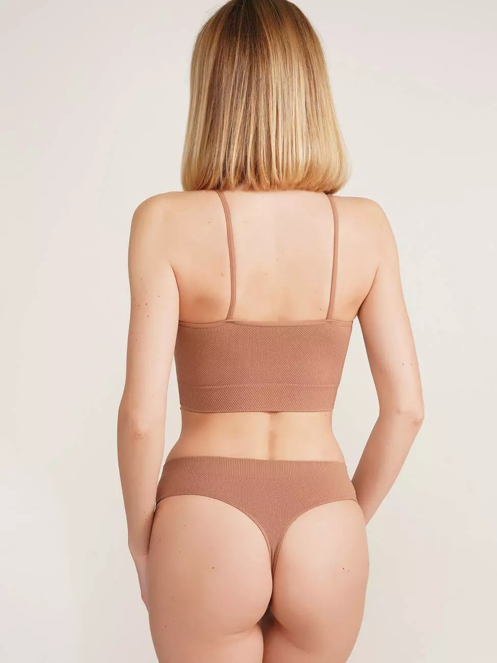 Жіночі безшовні стрінги з м’якої мікрофібри поєднують комфорт і стиль. Дихаюча тканина ефективно відводить вологу, забезпечуючи відчуття сухості протягом дня. Фактурний візерунок додає елегантності, а безшовний крій гарантує ідеальну посадку та непомітність під одягом.