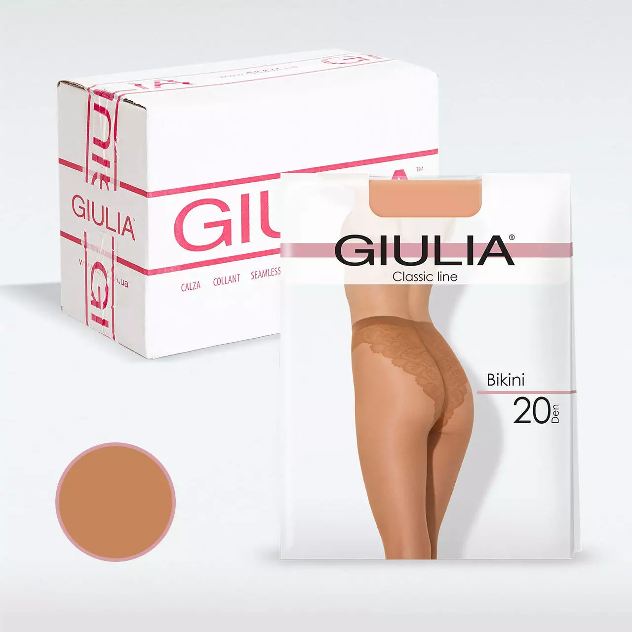 Тонкі та еластичні колготки Giulia BIKINI 20 з високоякісного поліаміду і еластану щільністю 20 den мають напівматове полотно. Ці колготи з середньою посадкою, що робить їх ідеальними для різних видів фігур. Окрему родзинку даній моделі додають ажурні трусики, які до того ж надають легкий утягуючий ефект. Для забезпечення додаткового комфорту виріб має зручні й практичні плоскі шви, які практично непомітні під одягомі, а також ластовицю з бавовни.