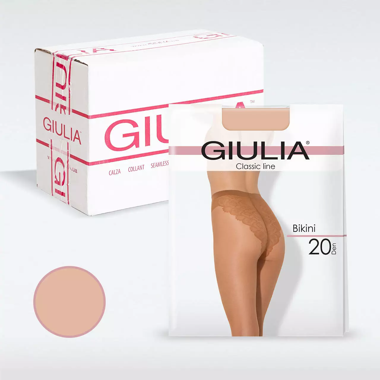 Тонкі та еластичні колготки Giulia BIKINI 20 з високоякісного поліаміду і еластану щільністю 20 den мають напівматове полотно. Ці колготи з середньою посадкою, що робить їх ідеальними для різних видів фігур. Окрему родзинку даній моделі додають ажурні трусики, які до того ж надають легкий утягуючий ефект. Для забезпечення додаткового комфорту виріб має зручні й практичні плоскі шви, які практично непомітні під одягомі, а також ластовицю з бавовни.