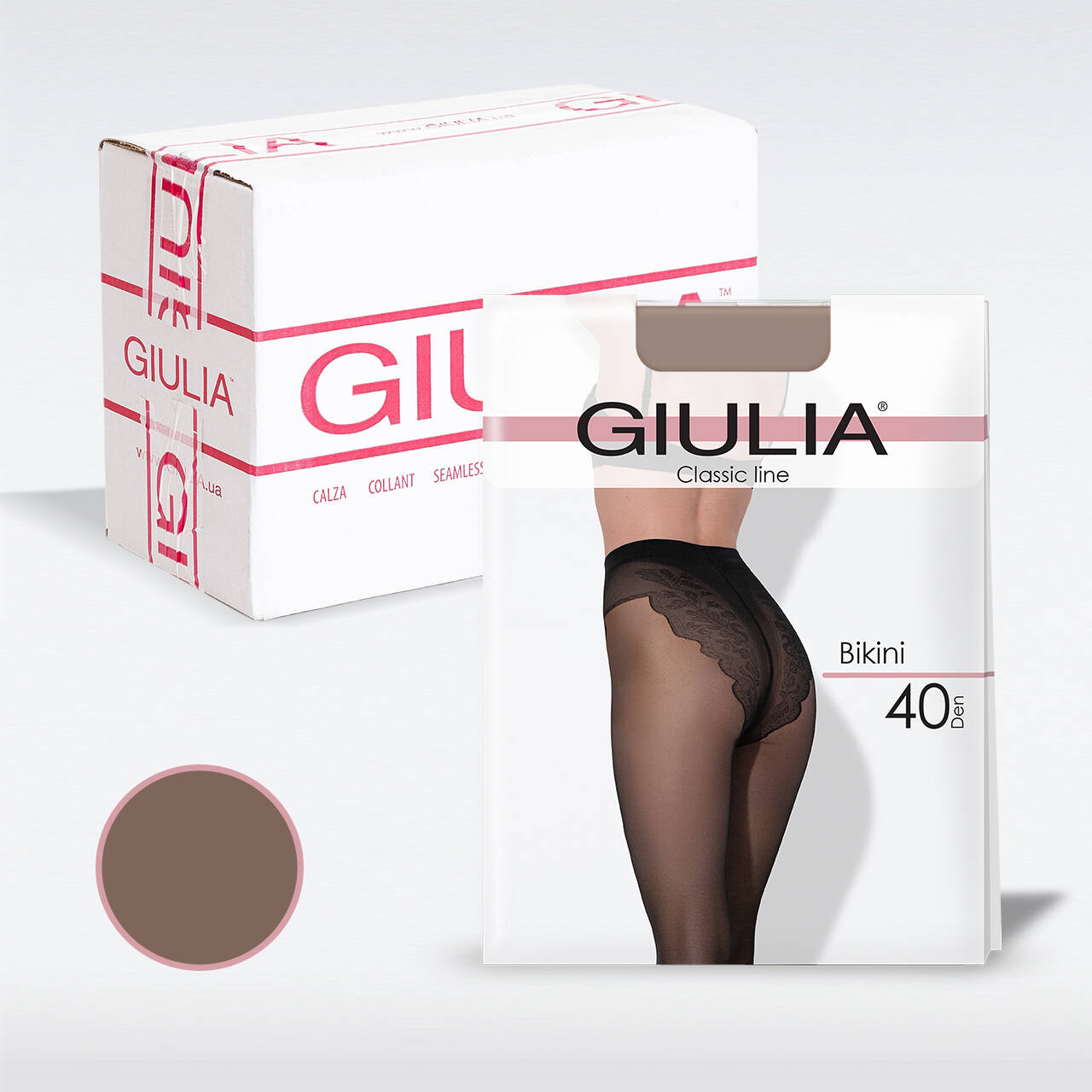 Тонкі і еластичні колготки Giulia BIKINI 40 з високоякісного поліаміду та еластану щільністю 40 den мають напівматове полотно. Ці колготи з середньою посадкою, що робить їх ідеальними для різних видів фігур. Окрему родзинку даній моделі додають ажурні трусики, які до того ж надають легкий утягуючий ефект. Для забезпечення додаткового комфорту виріб має зручні й практичні плоскі шви, які практично непомітні під одягомі, а також ластовицю з бавовни.