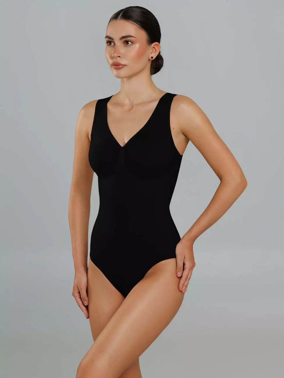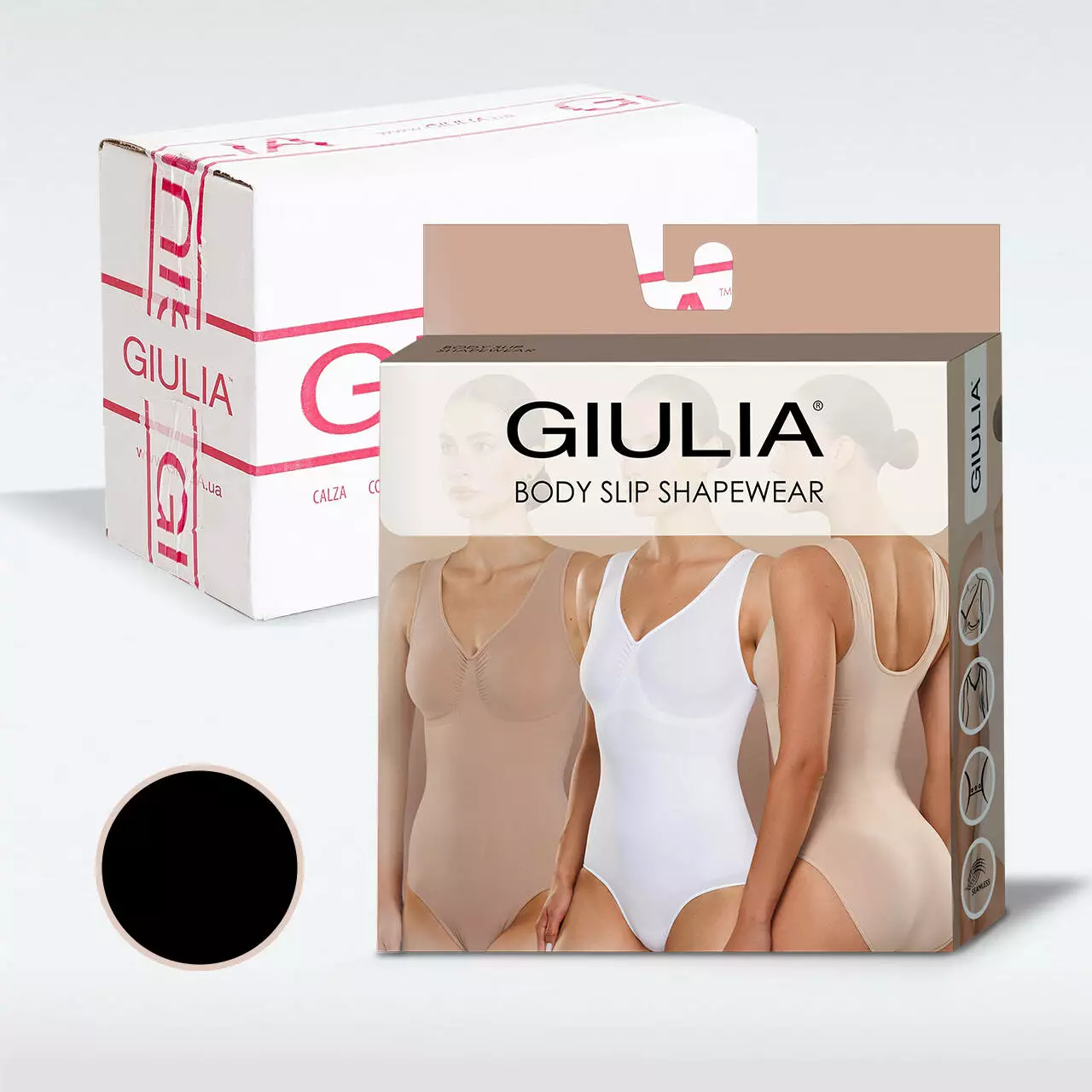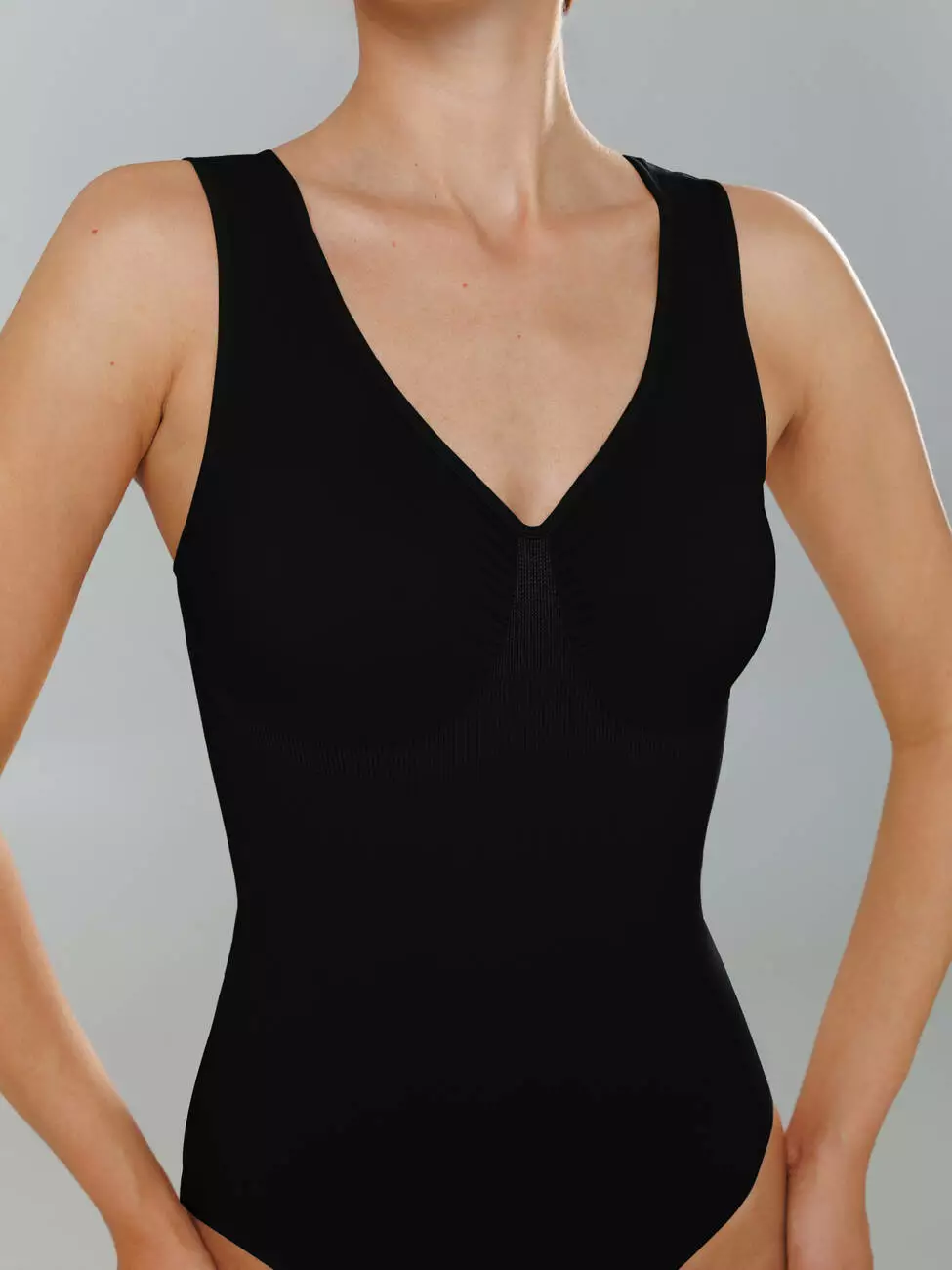 Боді з ефектом корекції з трусиками-сліпами на кнопках та широкими бретелями.