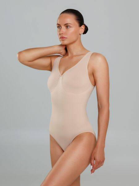 Коригуюче боді з трусиками-сліпами на кнопках та широкими бретелями.