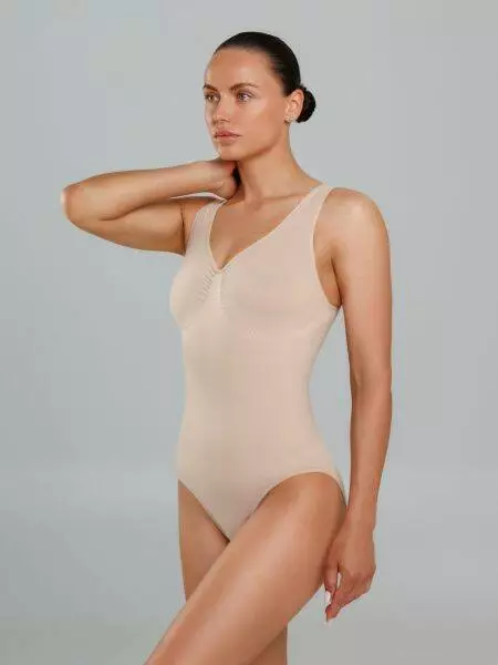 Коригуюче боді з трусиками-сліпами на кнопках та широкими бретелями.
