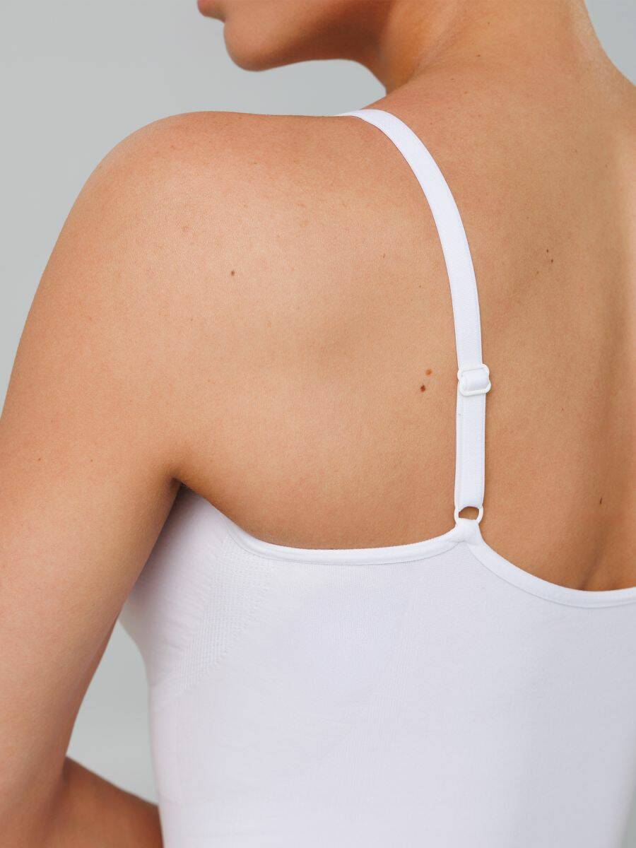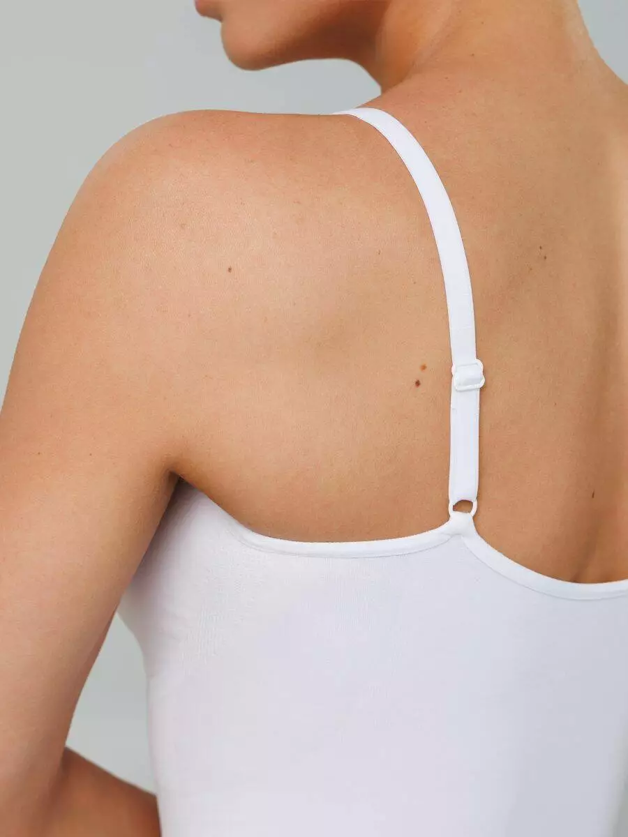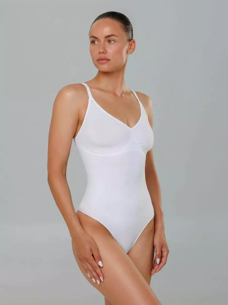Коригуюче боді із мікрофібри з трусиками-стрінгами на кнопках та регульованими бретелями.
