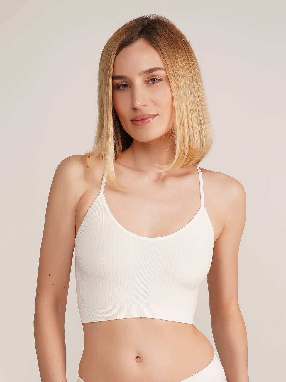 Giulia Cami top braid - безшовний топ, створений для комфорту. Дихаюча мікрофібра, еластичні тонкі бретелі та фактурний візерунок створюють ідеальний баланс між комфортом та стилем.