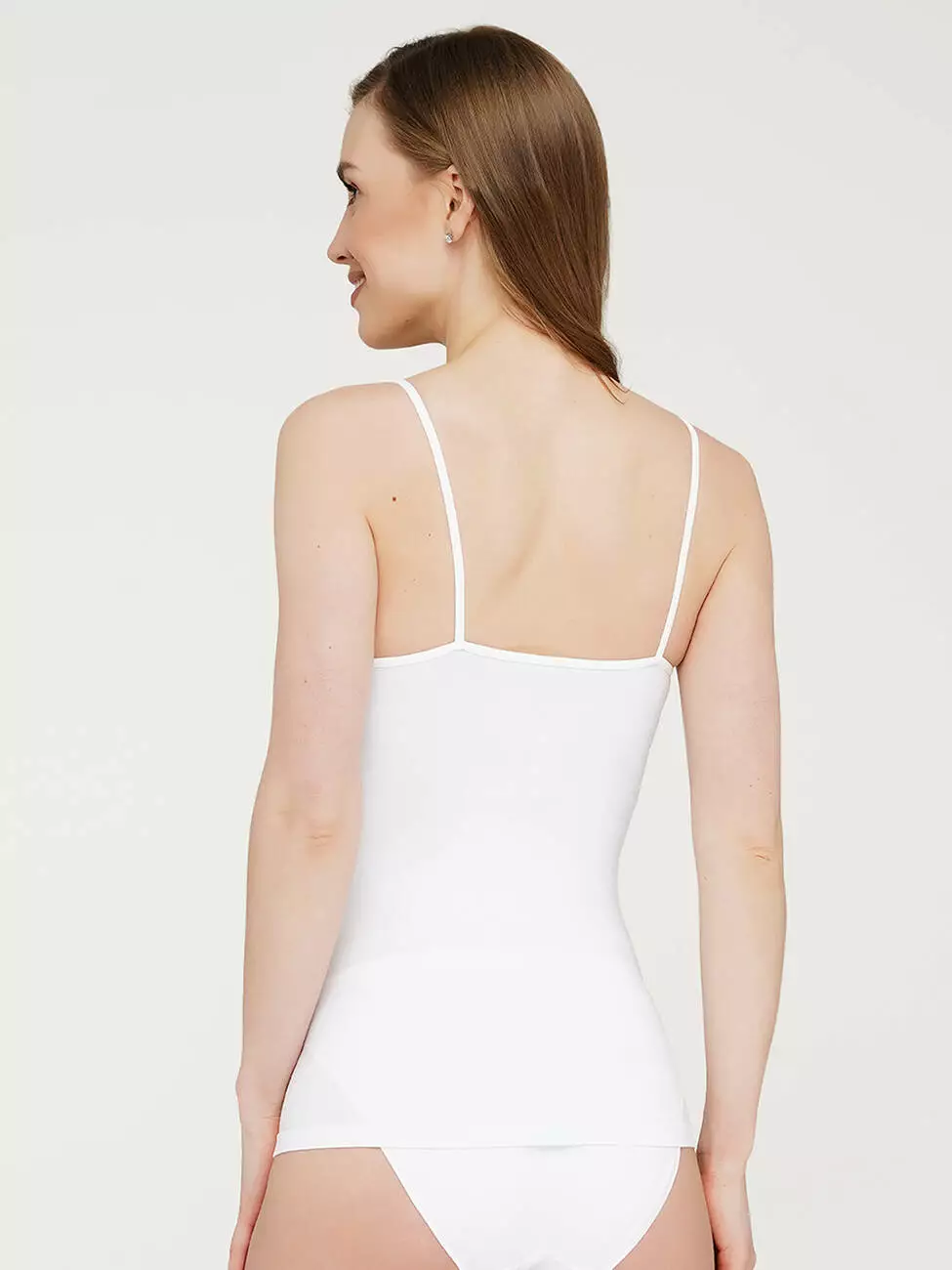 Зручна безшовна майка на тонких бретелях Giulia CAMISOLE з м'якої мікрофібри стане вашим улюбленим вибором завдяки своїм особливостям. Майка без бічних швів, що забезпечує максимальний комфорт, акуратність обробки країв і круглий виріз. Еластичні бретелі не розтягуються під час носіння, а майка ідеально облягає фігуру та має легкий коригуючий ефект. Цей універсальний предмет легко поєднується з будь-яким одягом, дозволяючи вам виглядати стильно в будь-якій ситуації.