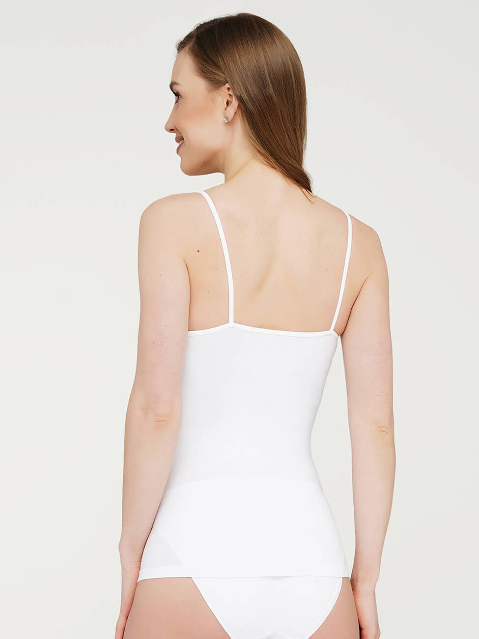 Зручна безшовна майка на тонких бретелях Giulia CAMISOLE з м'якої мікрофібри стане вашим улюбленим вибором завдяки своїм особливостям. Майка без бічних швів, що забезпечує максимальний комфорт, акуратність обробки країв і круглий виріз. Еластичні бретелі не розтягуються під час носіння, а майка ідеально облягає фігуру та має легкий коригуючий ефект. Цей універсальний предмет легко поєднується з будь-яким одягом, дозволяючи вам виглядати стильно в будь-якій ситуації.