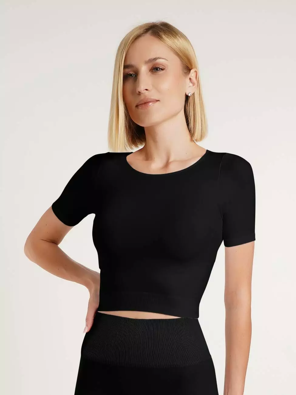 Безшовна футболка-топ Giulia CROP T-SHIRT з еластичної та ультратонкої мікрофібри - ідеальний вибір для активного спорту і повсякденного носіння. Футболка що не мнеться приємна до тіла, що робить її комфортною протягом усього дня. Кругле плетіння дозволяє уникнути деформації після прання, а облягаючий безшовний крій чудово пропускає вологу, забезпечуючи відчуття сухості і комфорту навіть у найінтенсивніших тренуваннях. Ідеально пасує по фігурі, надаючи зручну і стильну посадку.