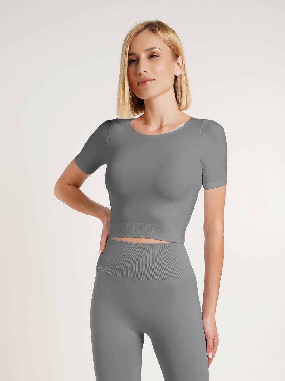 Безшовна футболка-топ Giulia CROP T-SHIRT з еластичної та ультратонкої мікрофібри - ідеальний вибір для активного спорту і повсякденного носіння. Футболка що не мнеться приємна до тіла, що робить її комфортною протягом усього дня. Кругле плетіння дозволяє уникнути деформації після прання, а облягаючий безшовний крій чудово пропускає вологу, забезпечуючи відчуття сухості і комфорту навіть у найінтенсивніших тренуваннях. Ідеально пасує по фігурі, надаючи зручну і стильну посадку.