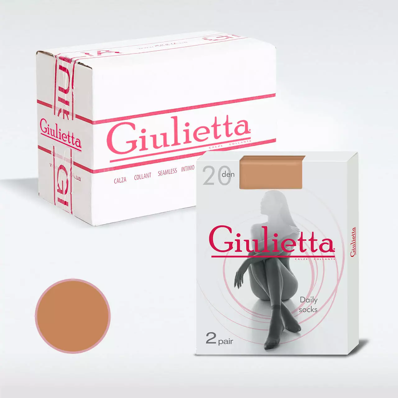 Шкарпетки Giulietta DAILY 20 socks — це незамінний аксесуар у жіночому гардеробі, що вдосконалює будь-який образ і захищає ноги від натирання взуттям. Вони майже непомітні маючи щільність 20 den, забезпечують повний комфорт навіть у спекотну погоду завдяки легкій, тонкій текстурі, і можуть бути використані з відкритим взуттям. Щільно облягаючи стопу, шкарпетки повторюють її форму, не натирають шкіру та не викликають подразнень. Легкі та практично невагомі, вони забезпечують комфорт протягом усього дня. М'яка резинка надійно фіксується на щиколотці, не перетискаючи її і не залишаючи слідів. В коробці йде 2 пари. Склад шкарпеток Giulietta DAILY 20 calzino: 96% поліамід, 4% еластан.