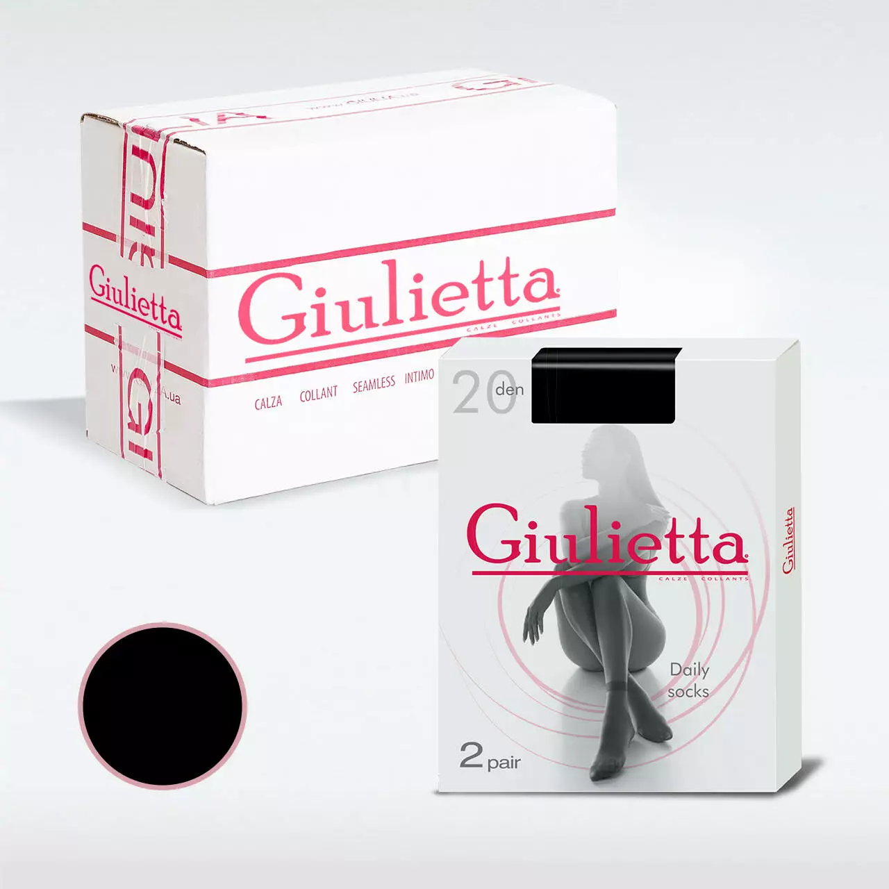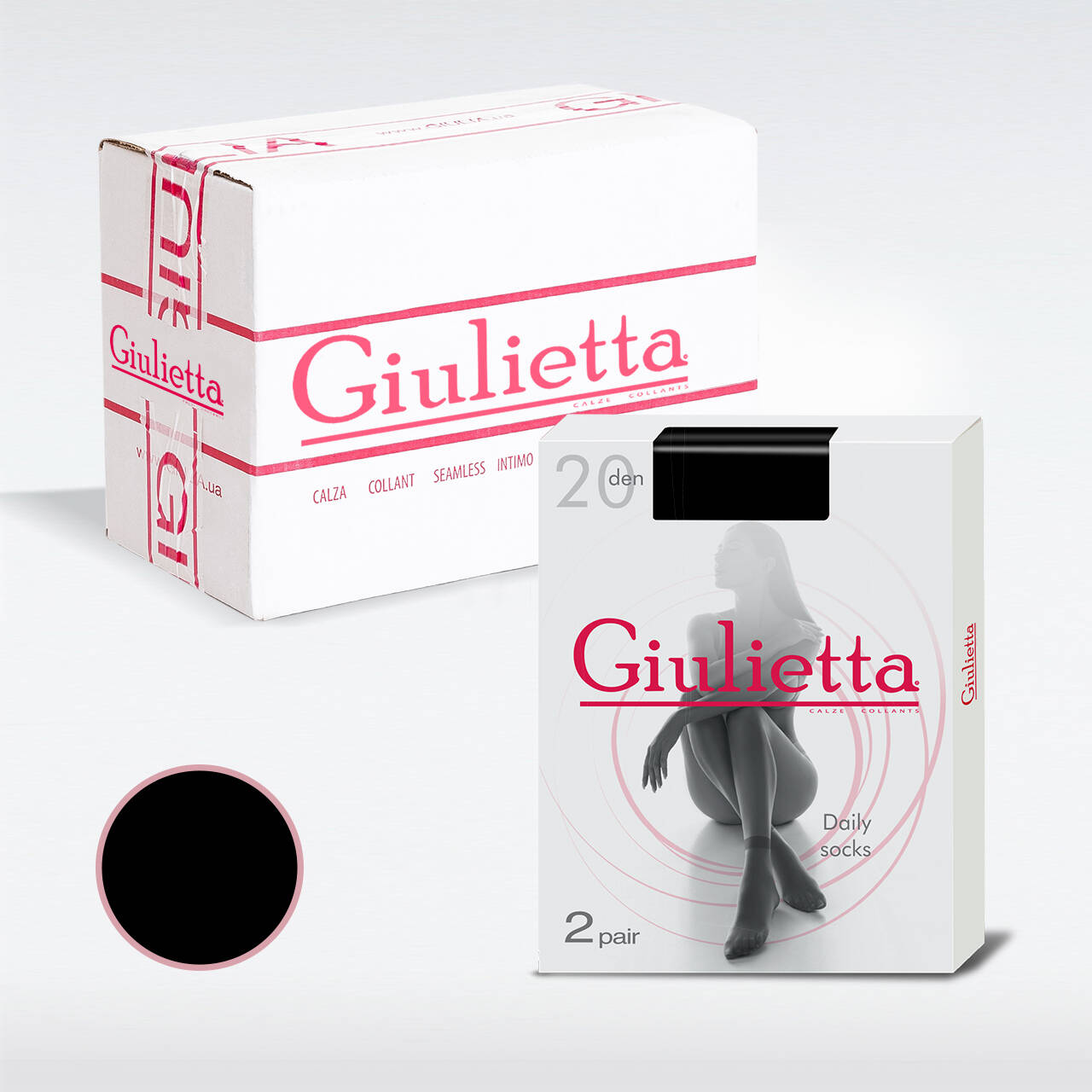 Шкарпетки Giulietta DAILY 20 socks — це незамінний аксесуар у жіночому гардеробі, що вдосконалює будь-який образ і захищає ноги від натирання взуттям. Вони майже непомітні маючи щільність 20 den, забезпечують повний комфорт навіть у спекотну погоду завдяки легкій, тонкій текстурі, і можуть бути використані з відкритим взуттям. Щільно облягаючи стопу, шкарпетки повторюють її форму, не натирають шкіру та не викликають подразнень. Легкі та практично невагомі, вони забезпечують комфорт протягом усього дня. М'яка резинка надійно фіксується на щиколотці, не перетискаючи її і не залишаючи слідів. В коробці йде 2 пари. Склад шкарпеток Giulietta DAILY 20 calzino: 96% поліамід, 4% еластан.
