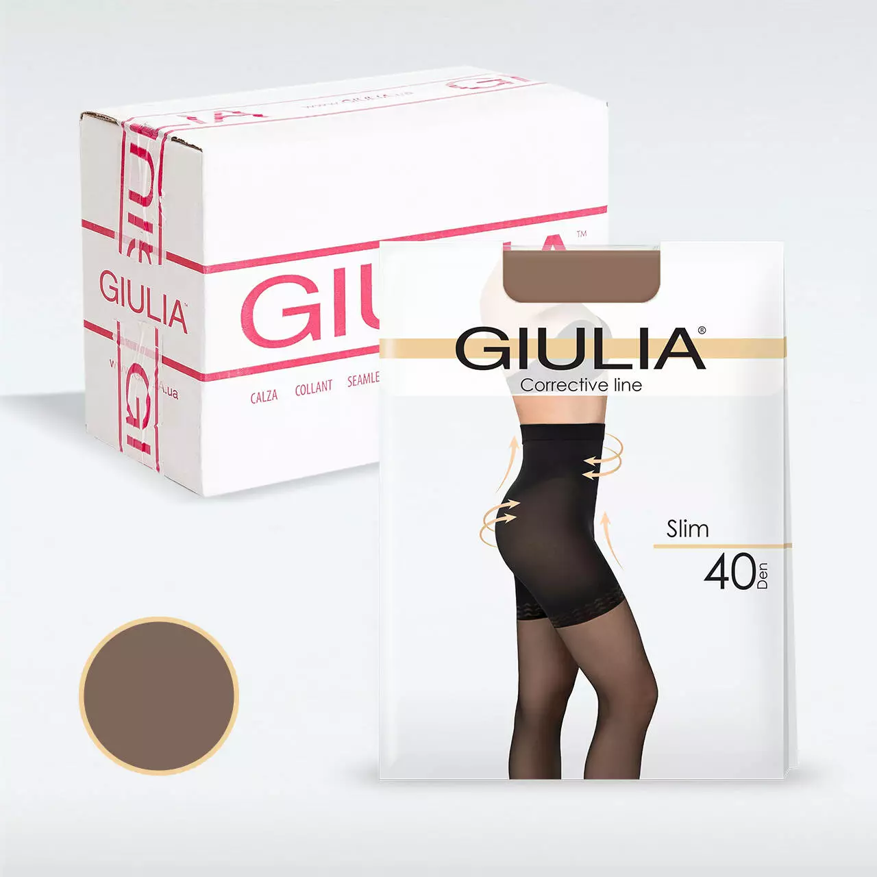 Коригуючі жіночі колготки Giulia EFFECT UP 40 оснащені спеціальними моделюючими високими шортиками, які ефективно формують красиву форму сідниць і піднімають їх. Вони також моделюють стегна, животик і боки, розгладжуючи нерівності завдяки особливо щільним і еластичним зонам у шортиках. Ця прозора модель з напівматовою структурою має щільність 40 den тому чудово облягає ніжки, створюючи рівну і гладку поверхню. Крім того, колготки надзвичайно зручні і практичні завдяки комфортним плоским швам та зручному поясу.