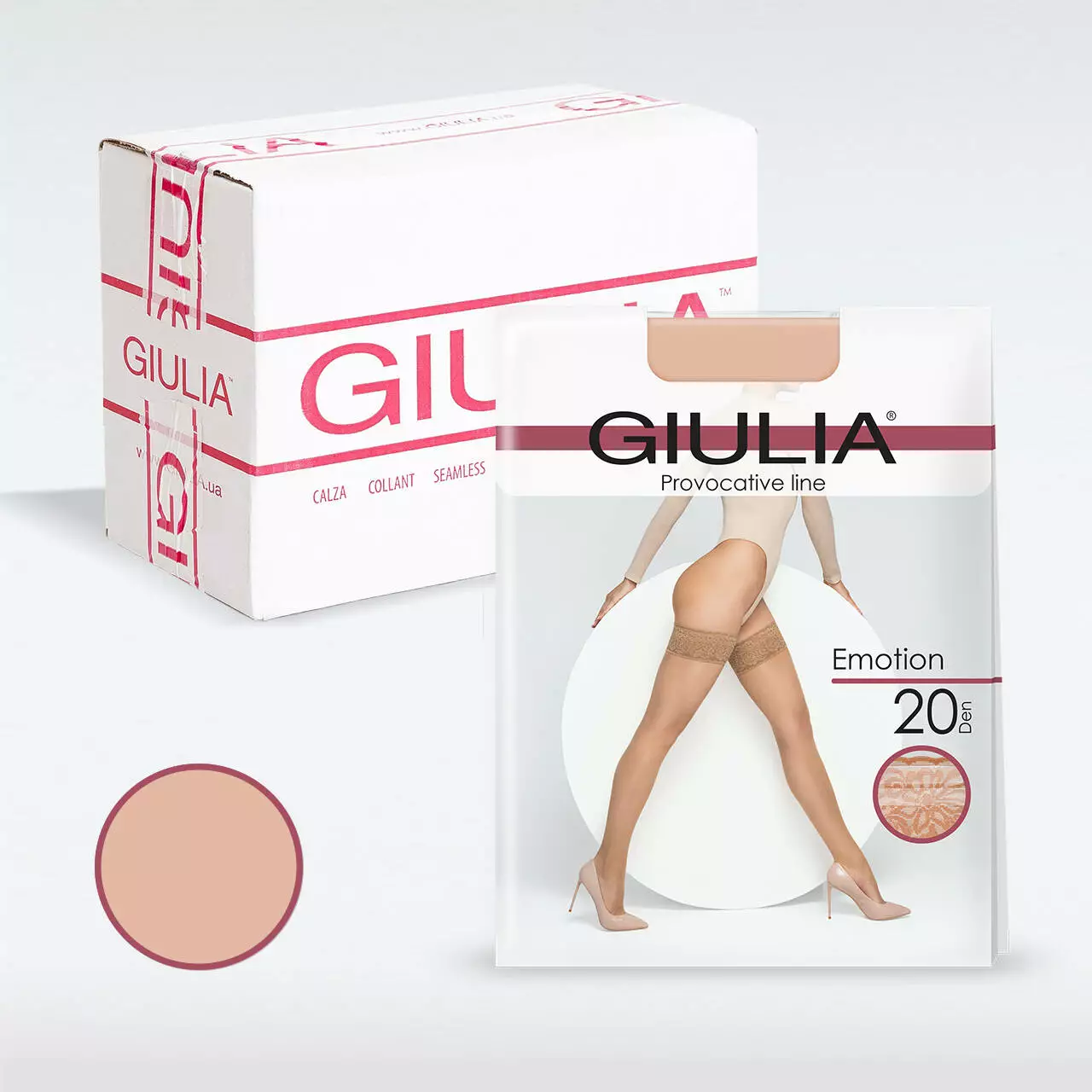 Шовковисті напівматові панчохи Giulia EMOTION 20 з елегантним самоутримувальним мереживом. Резинка прикрашена вишуканим ажурним мереживом з квітковими мотивами, що надає виробу особливий шарм. Її ширина становить 8 сантиметрів, забезпечуючи надійне утримання на нозі завдяки високоякісним силіконовим смужкам. Модель має шовковисте напівматове полотно щільністю 20 den, надзвичайно еластичне і чудово облягає ніжки, створюючи вишуканий вигляд і забезпечуючи комфорт протягом дня.