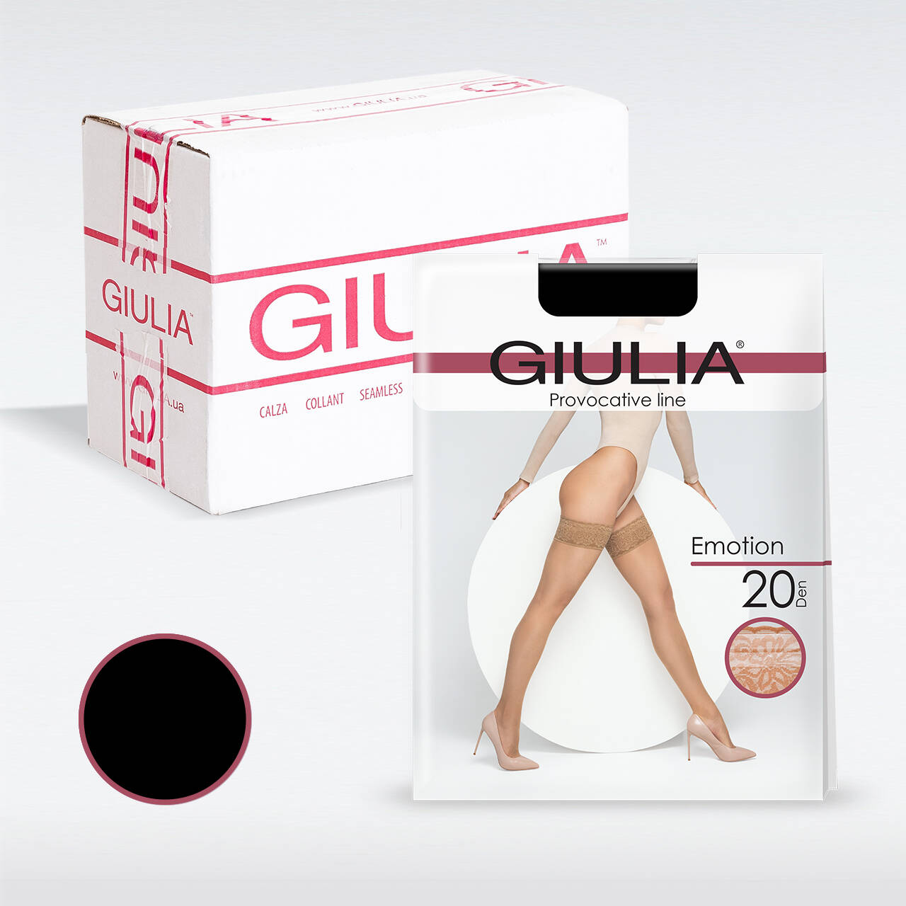 Шовковисті напівматові панчохи Giulia EMOTION 20 з елегантним самоутримувальним мереживом. Резинка прикрашена вишуканим ажурним мереживом з квітковими мотивами, що надає виробу особливий шарм. Її ширина становить 8 сантиметрів, забезпечуючи надійне утримання на нозі завдяки високоякісним силіконовим смужкам. Модель має шовковисте напівматове полотно щільністю 20 den, надзвичайно еластичне і чудово облягає ніжки, створюючи вишуканий вигляд і забезпечуючи комфорт протягом дня.