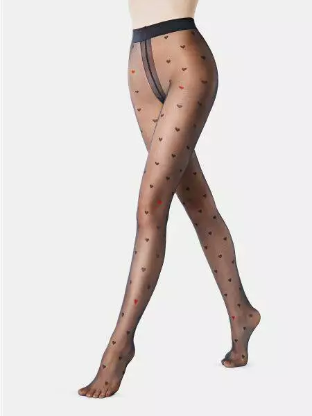 Колготки Giulia EVA 20 вирізняються серед фантазійної лінійки яскравим принтом із маленьких чорних та червоних сердець по всій довжині виробу. Модель має посилений пояс-резинку та середню посадку, щільність 20 den та укріплений мисок. Бавовняна ластовиця гарантує комфорт та гігієну під час носіння..