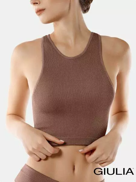 Безшовний топ Giulia HALTER TOP RIB забезпечує максимальний комфорт і свободу рухів. Виготовлений з мікрофібри в рубчик, який відрізняється еластичністю і м'якістю. Широкі безшовні бретелі і круглий виріз не обмежують руху і не натирають. Цей топ ідеально підходить як для тренувань, так і для повсякденного використання, створюючи гармонійний і зручний образ.