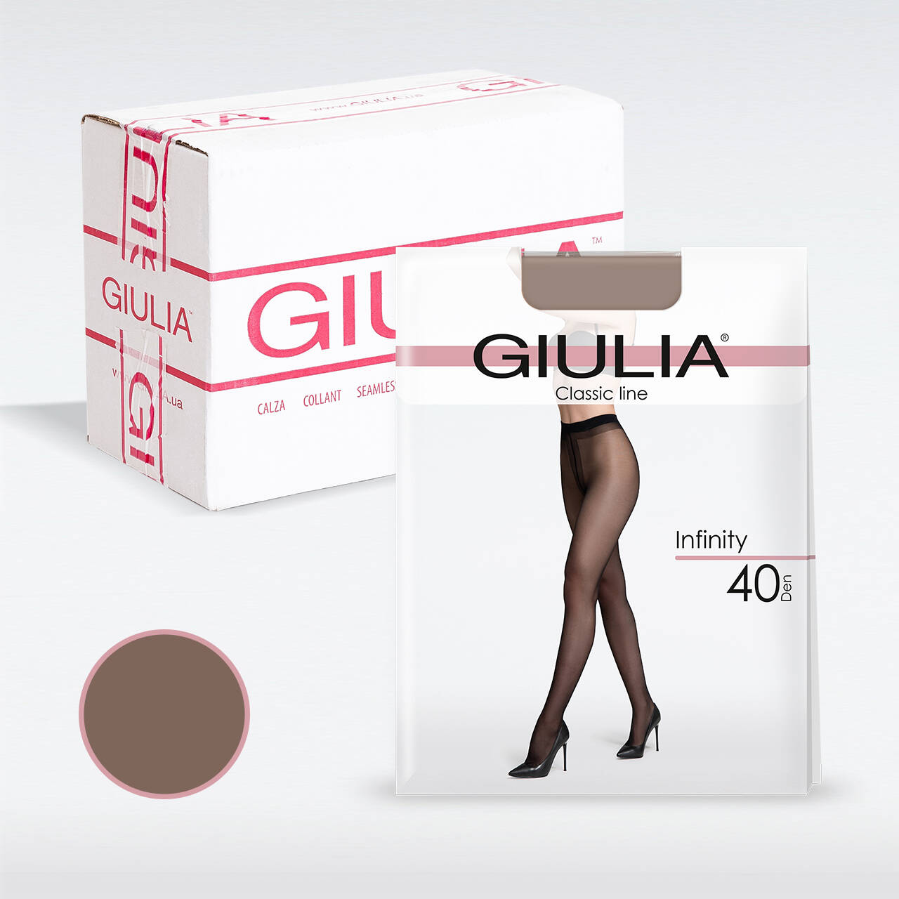Елегантні колготки Giulia Infinity 40 забезпечують максимальний комфорт та стиль. Вони мають шовковисту, матову поверхню та щільність 40 den, що виглядає витончено та непомітно під одягом. Колготки без шортиків, з м'яким поясом T-band, бавовняною гігієнічною ластовицею та пласкими швами створені для комфортного щоденного носіння. Натуральні благородні відтінки роблять їх ідеальними для будь-якого типу фігури та підходять для будь-якого стилю одягу, підкреслюючи природну красу ваших ніг.