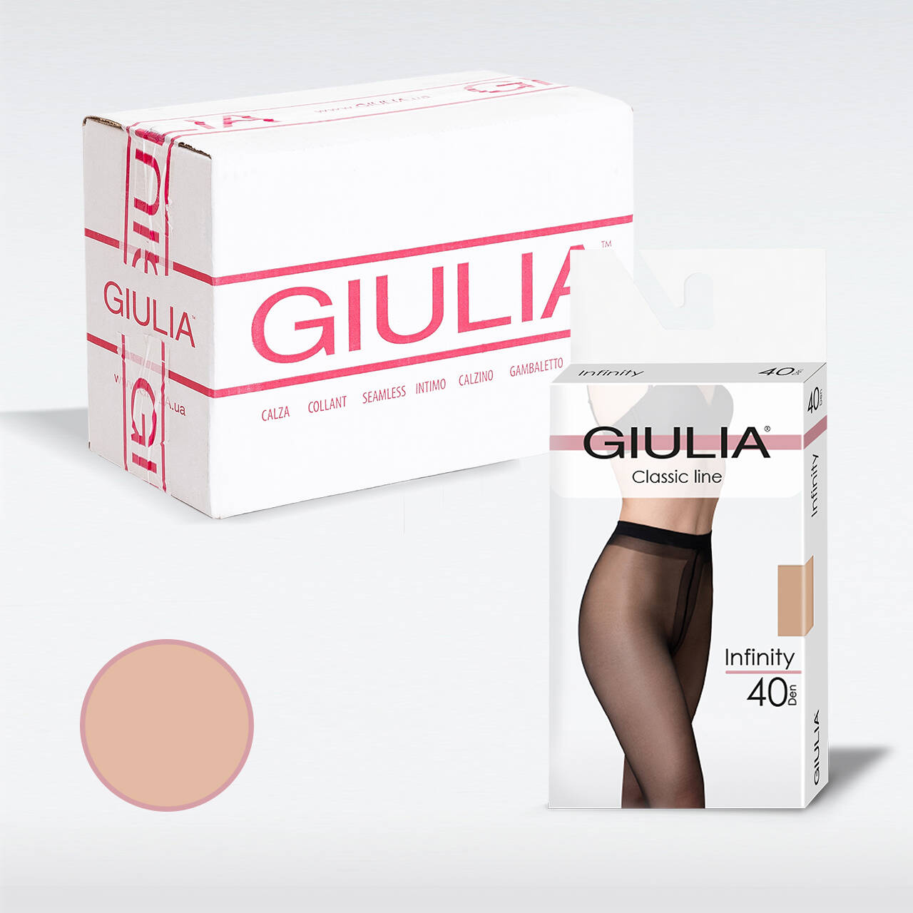 Елегантні колготки Giulia Infinity 40 забезпечують максимальний комфорт та стиль. Вони мають шовковисту, матову поверхню та щільність 40 den, що виглядає витончено та непомітно під одягом. Колготки без шортиків, з м'яким поясом T-band, бавовняною гігієнічною ластовицею та пласкими швами створені для комфортного щоденного носіння. Натуральні благородні відтінки роблять їх ідеальними для будь-якого типу фігури та підходять для будь-якого стилю одягу, підкреслюючи природну красу ваших ніг.