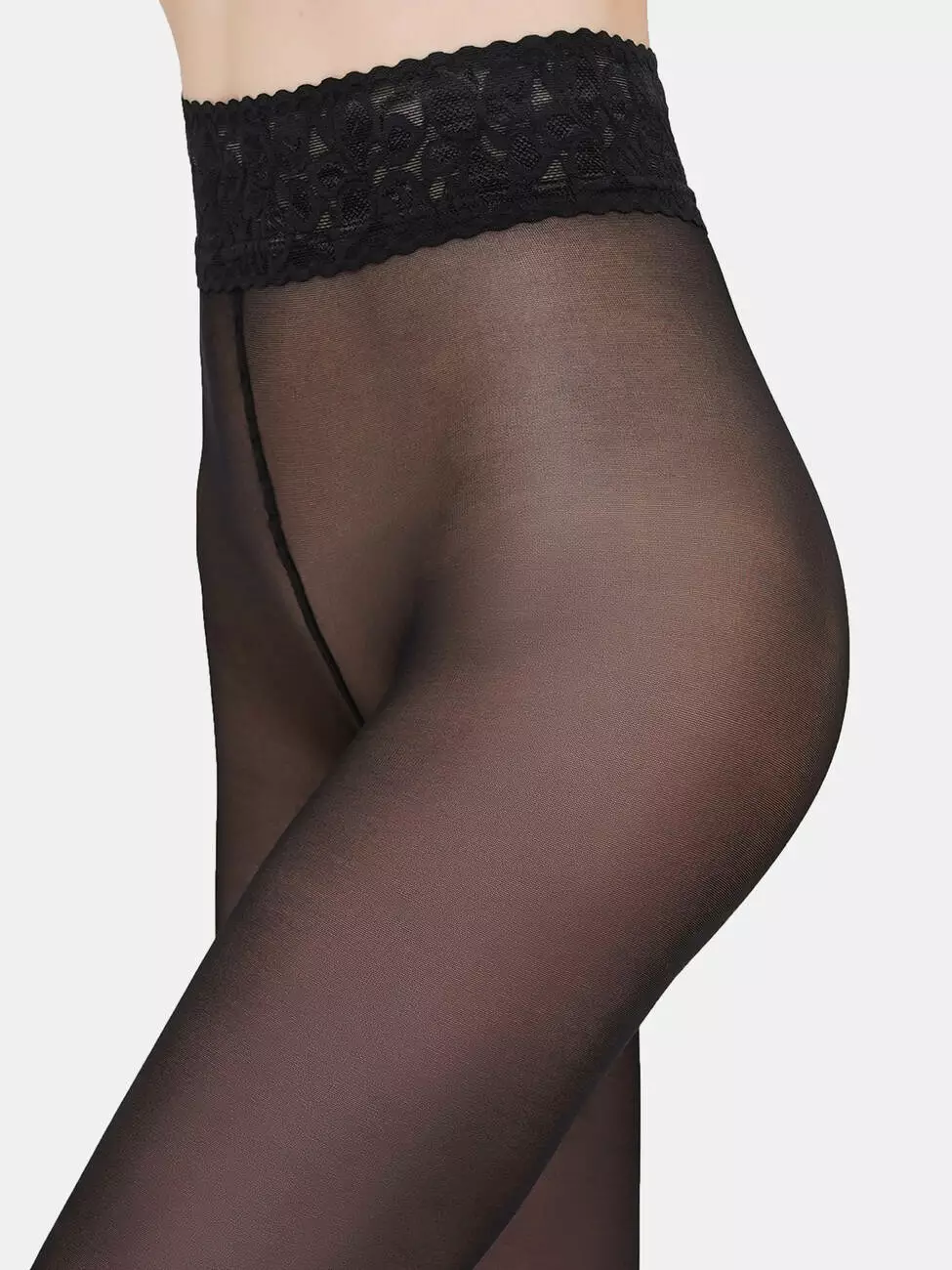 Жіночі колготки 40 DEN із витонченим широким ажурним поясом на силіконовій основі — стильна модель для щоденного та особливого образу. Середня посадка забезпечує комфортну фіксацію без сповзання й здавлювання. Пласкі шви та бавовняна ластка гарантують зручність і гігієнічність. Еластичне полотно красиво підкреслює силует.