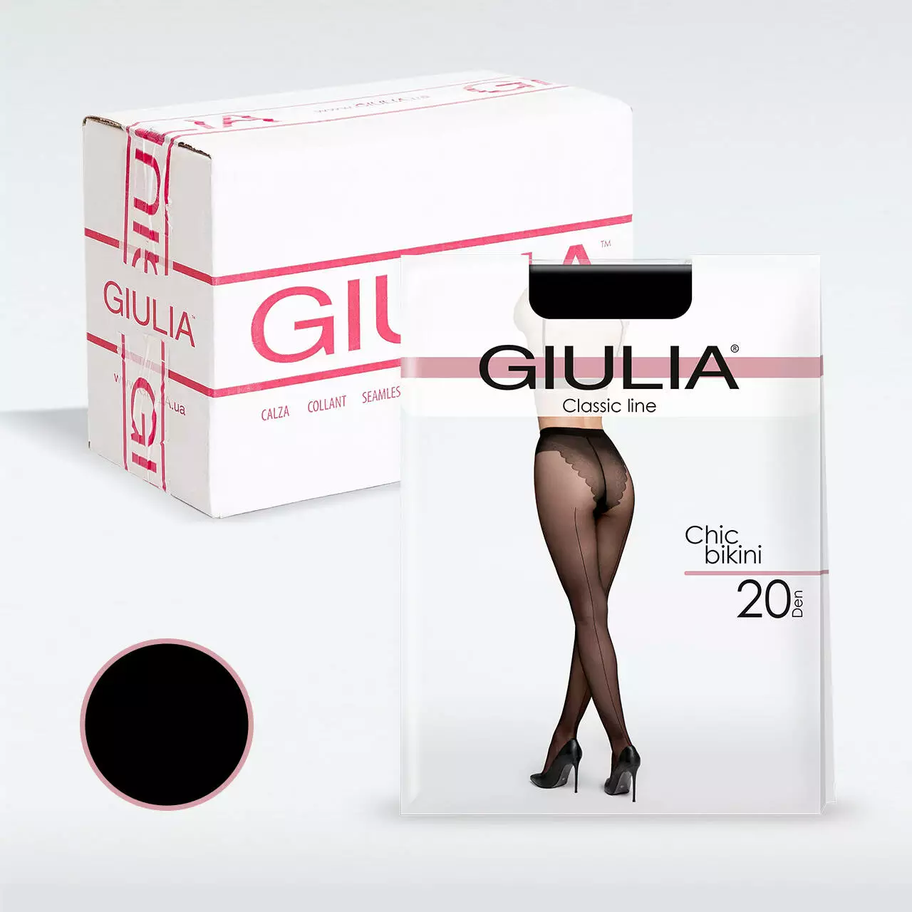 Класичні матові колготки з ажурними трусиками і декоративним швом Giulia CHIC BIKINI 20 Den nero, 3(M)