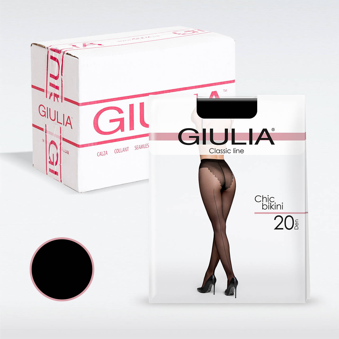 Класичні матові колготки з ажурними трусиками і декоративним швом Giulia CHIC BIKINI 20 Den nero, 4(L)