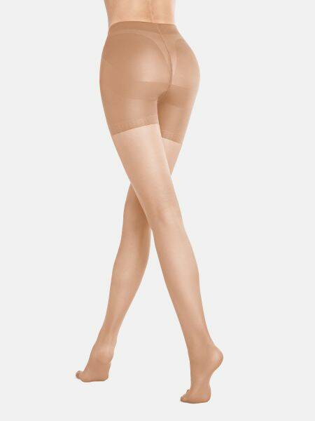 Жіночі колготки 40 DEN з високими моделюючими шортиками створюють ефект підтягнутих сідниць і формують силует. Щільні еластичні зони коригують стегна, живіт і боки, розгладжуючи нерівності. Напівматова прозора текстура делікатно облягає ноги. Пласкі шви та комфортний пояс забезпечують зручність протягом дня.