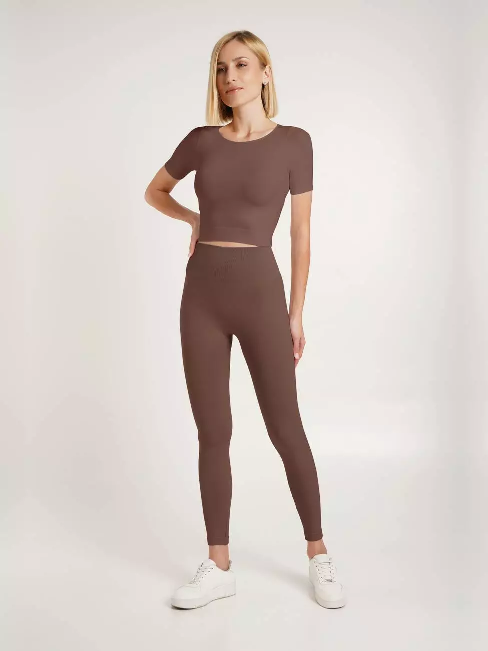 Безшовні легінси Giulia LEGGINGS SPORT SHAPE виготовлені з мякої мікрофібри, що забезпечує ідеальне облягання та гарно підкреслює вигини фігури. Сборчастий шов ззаду створює ефект підтягнутих сідниць, надаючи їм більш округлий і привабливий вигляд. Модель доповнена широким поясом з високою посадкою для надійної підтримки живота та підкреслює талію і додає витонченості вашому образу.
