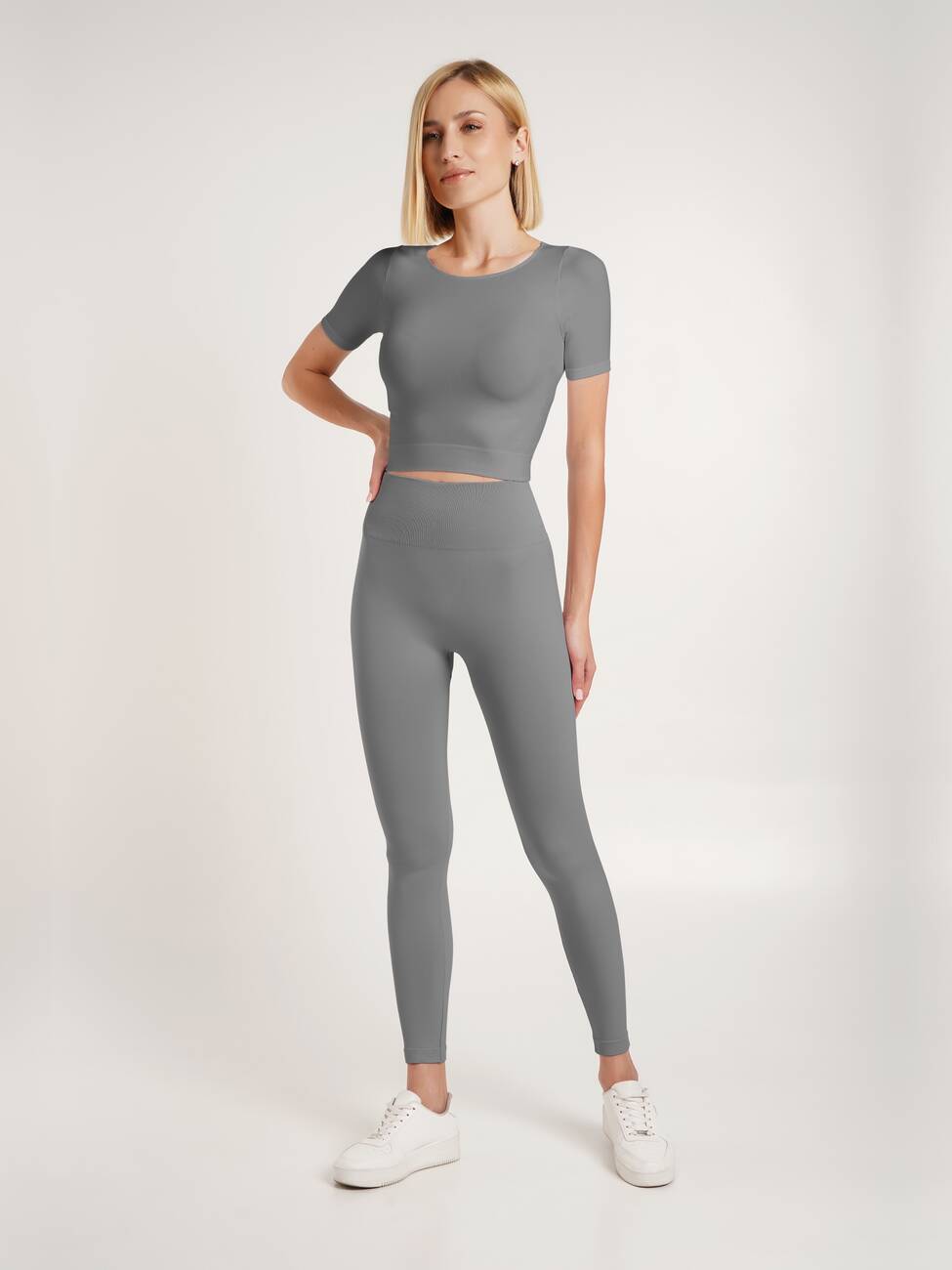 Безшовні легінси Giulia LEGGINGS SPORT SHAPE виготовлені з мякої мікрофібри, що забезпечує ідеальне облягання та гарно підкреслює вигини фігури. Сборчастий шов ззаду створює ефект підтягнутих сідниць, надаючи їм більш округлий і привабливий вигляд. Модель доповнена широким поясом з високою посадкою для надійної підтримки живота та підкреслює талію і додає витонченості вашому образу.