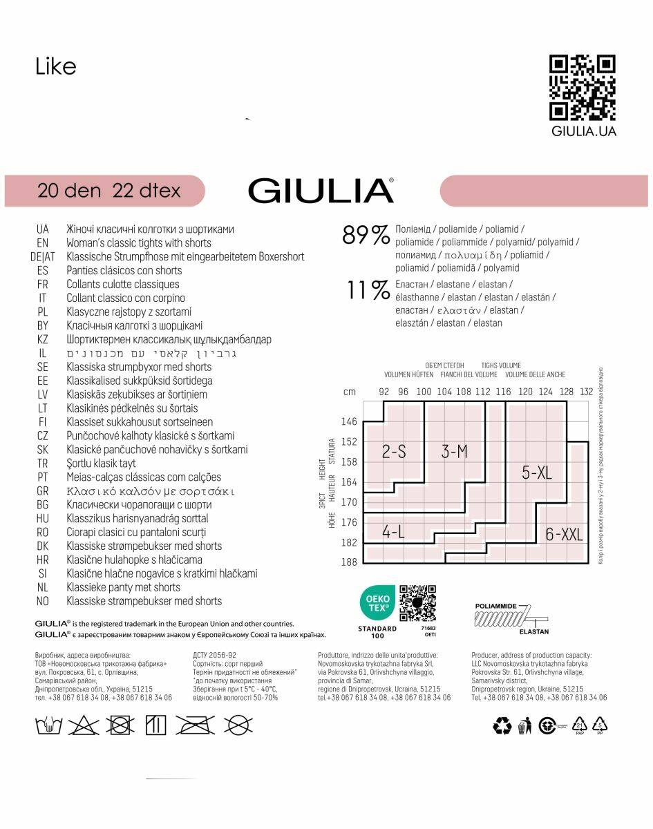 Класичні колготки LIKE 20 — ідеальний вибір для тих, хто цінує традиційний стиль у поєднанні з комфортом. Колготки мають легкий блиск, середню посадку, шортики та пояс, а також ущільнені миски. Вони тонкі (20 DEN) та напівпрозорі, ідеально підходять для весни та офісного стилю.