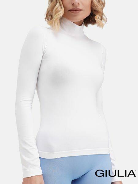 Giulia LONG SLEEVE NECK - це жіноча безшовна водолазка, що вражає своєю стильністю та комфортом. Вона виготовлена з м'якої та приємної на дотик мікрофібри, яка ідеально облягає фігуру. Довгі рукави забезпечують надійний захист від холоду і забезпечують комфорт у холодну погоду. Безшовна конструкція додає витонченості, а низький комір підкреслює жіночність образу. Цей лонгслів ідеально поєднується з будь-яким стилем одягу, чудово пасує як для повсякденного носіння, так і для створення елегантного вечірнього образу.