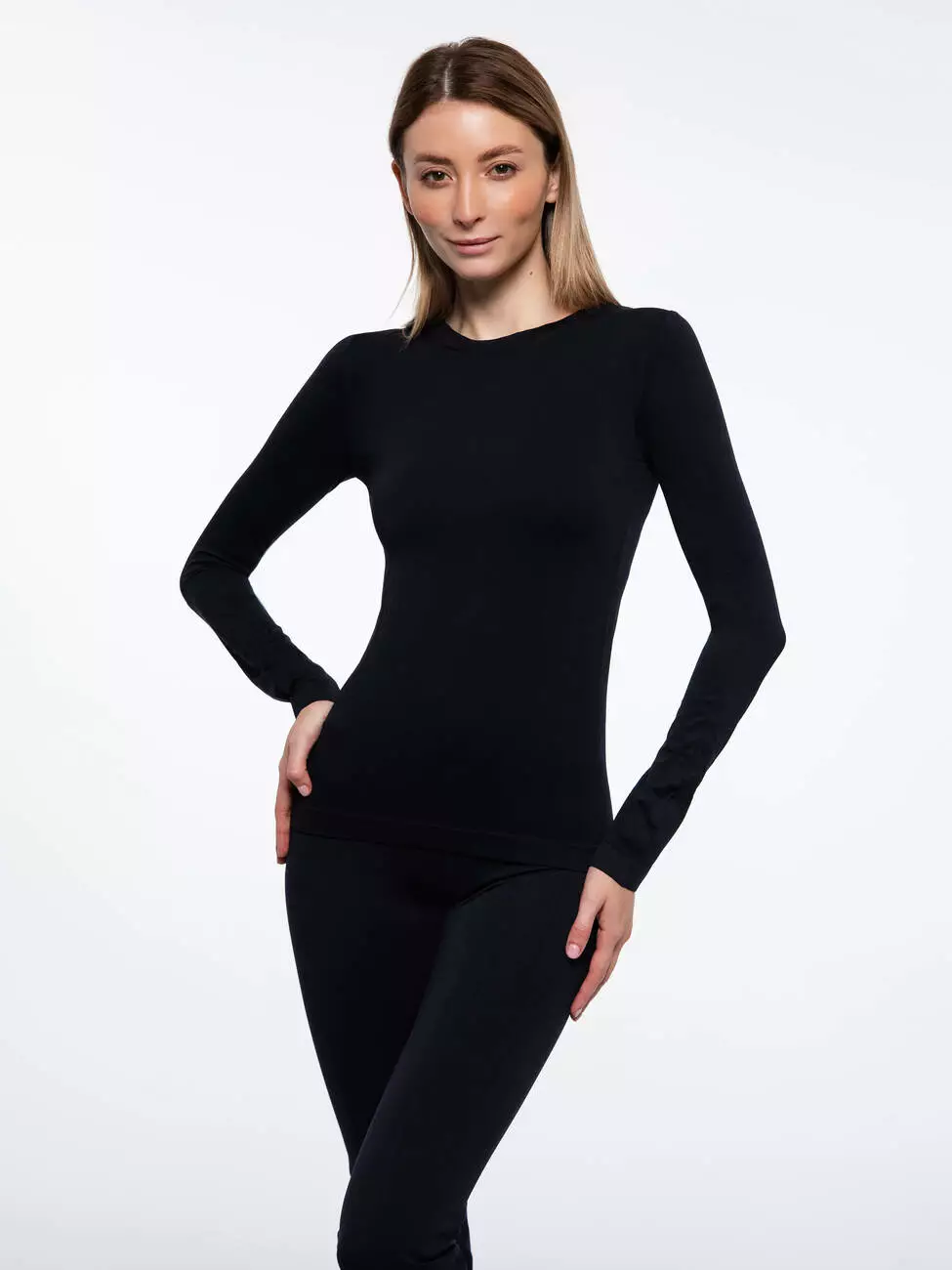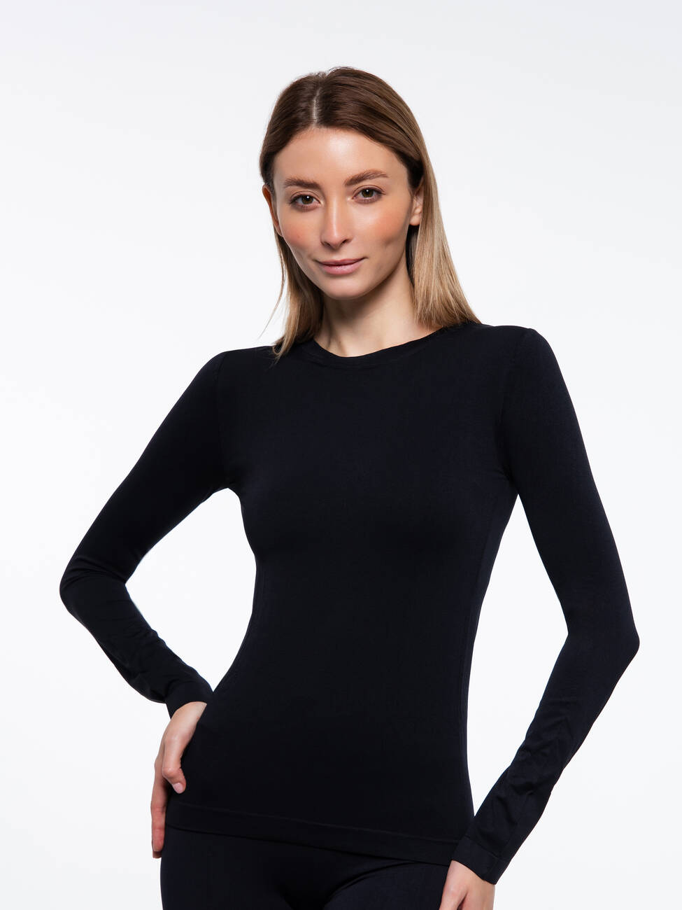 Безшовний базовий лонгслів з круглим вирізом Giulia LONGSLEEVE 01 black, S/M