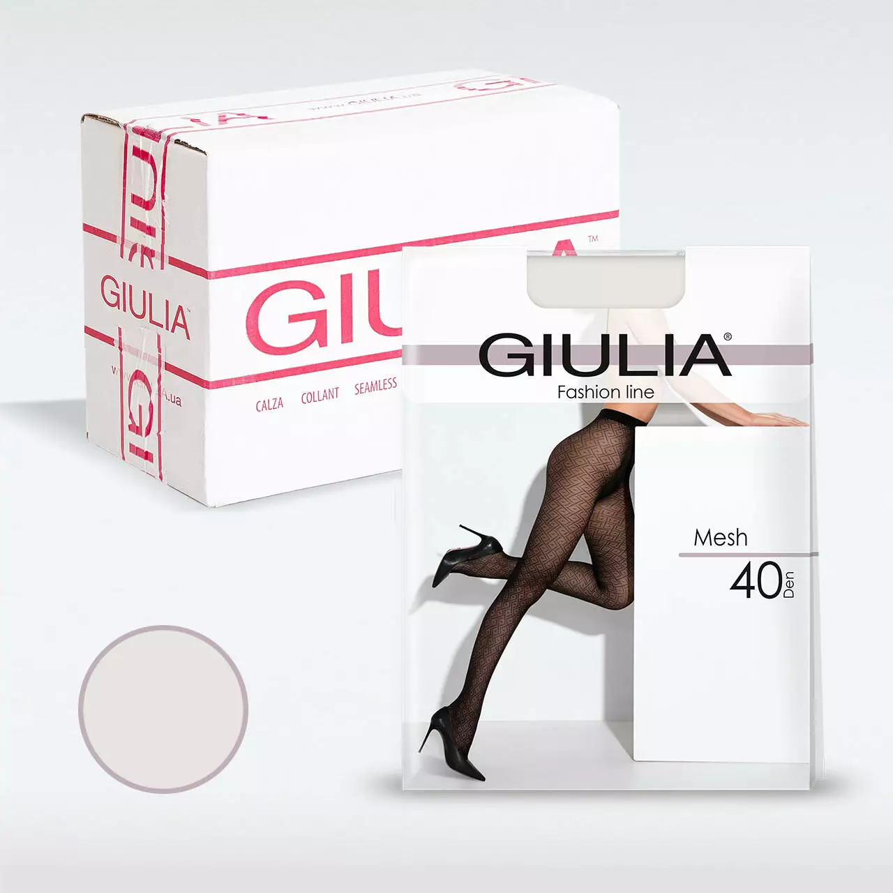 Жіночі фантазійні колготки Giulia MESH створені для повсякденних та святкових елегантних образів. Основа моделі має полотно з мікросітки з особливим фантазійним візерунком у вигляді смуг навколо ніжок. Відсутність шортиків робить їх ідеальними для носіння з сукнями або короткими спідницями. Гігієнічна ластка гарантує комфорт і впевненість. Зручний пояс надійно фіксує колготки на талії, а середня посадка не обмежує рух і забезпечує комфорт під час ходьби.