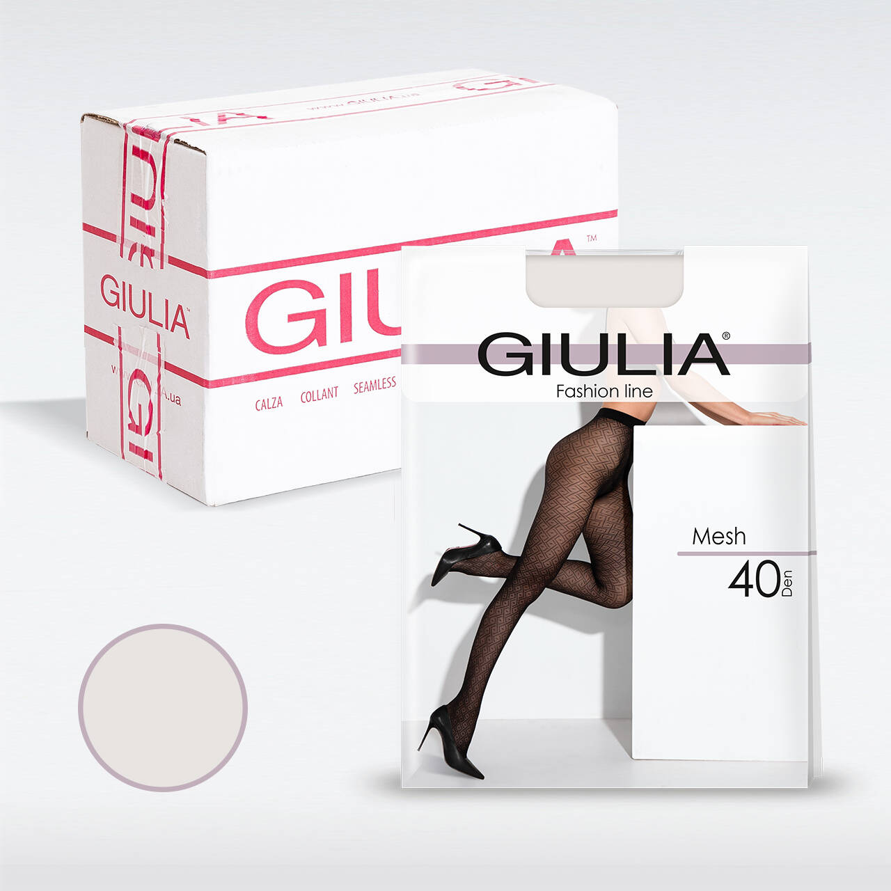 Жіночі фантазійні колготки Giulia MESH створені для повсякденних та святкових елегантних образів. Основа моделі має полотно з мікросітки з особливим фантазійним візерунком у вигляді смуг навколо ніжок. Відсутність шортиків робить їх ідеальними для носіння з сукнями або короткими спідницями. Гігієнічна ластка гарантує комфорт і впевненість. Зручний пояс надійно фіксує колготки на талії, а середня посадка не обмежує рух і забезпечує комфорт під час ходьби.