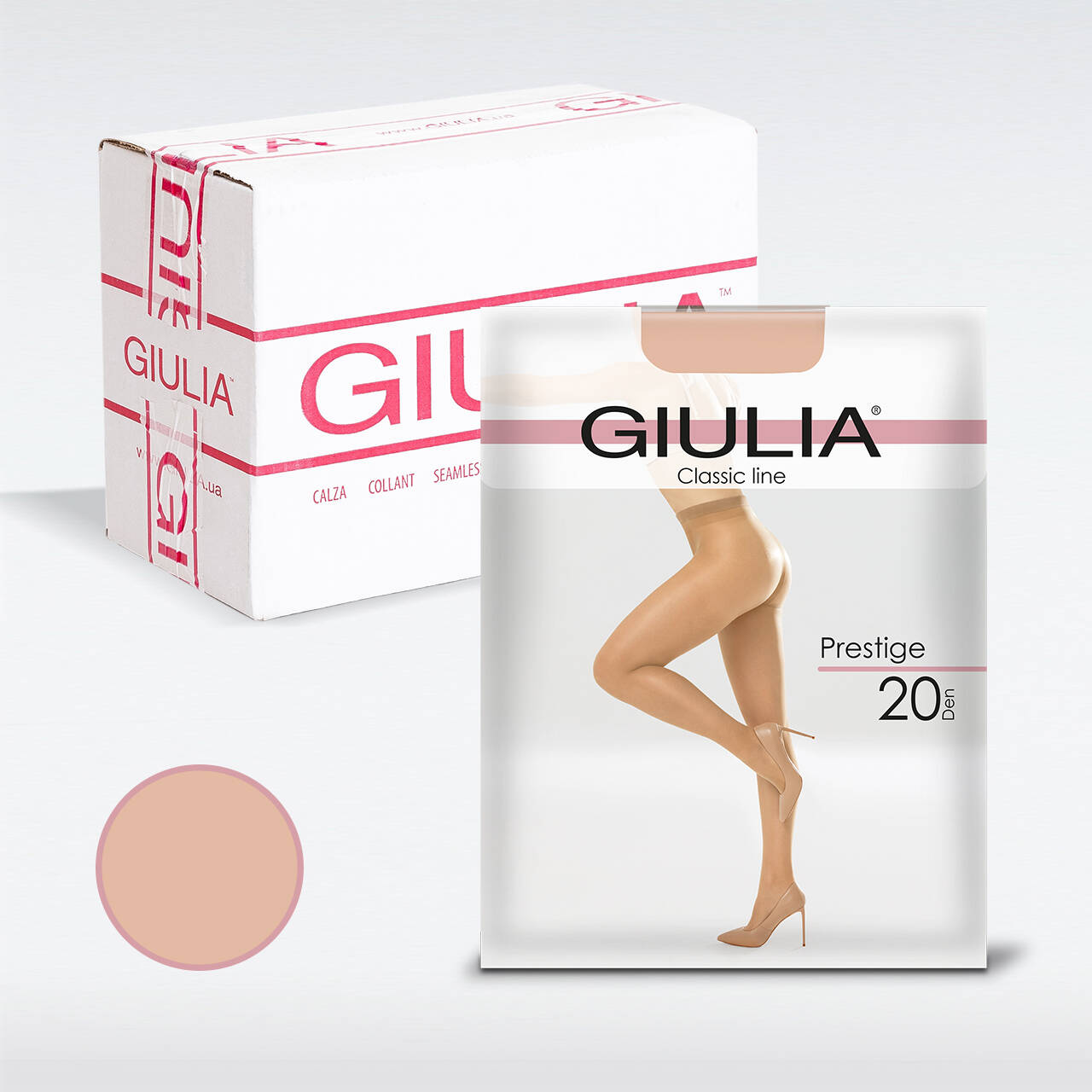 Класичні прозорі колготки Giulia Prestige щільністю 20 ден з комфортним еластичним T-band поясом, що забезпечує надійну фіксацію без дискомфорту. Плоскі шви та гігієнічна ластовиця гарантують максимальну зручність протягом усього дня.
