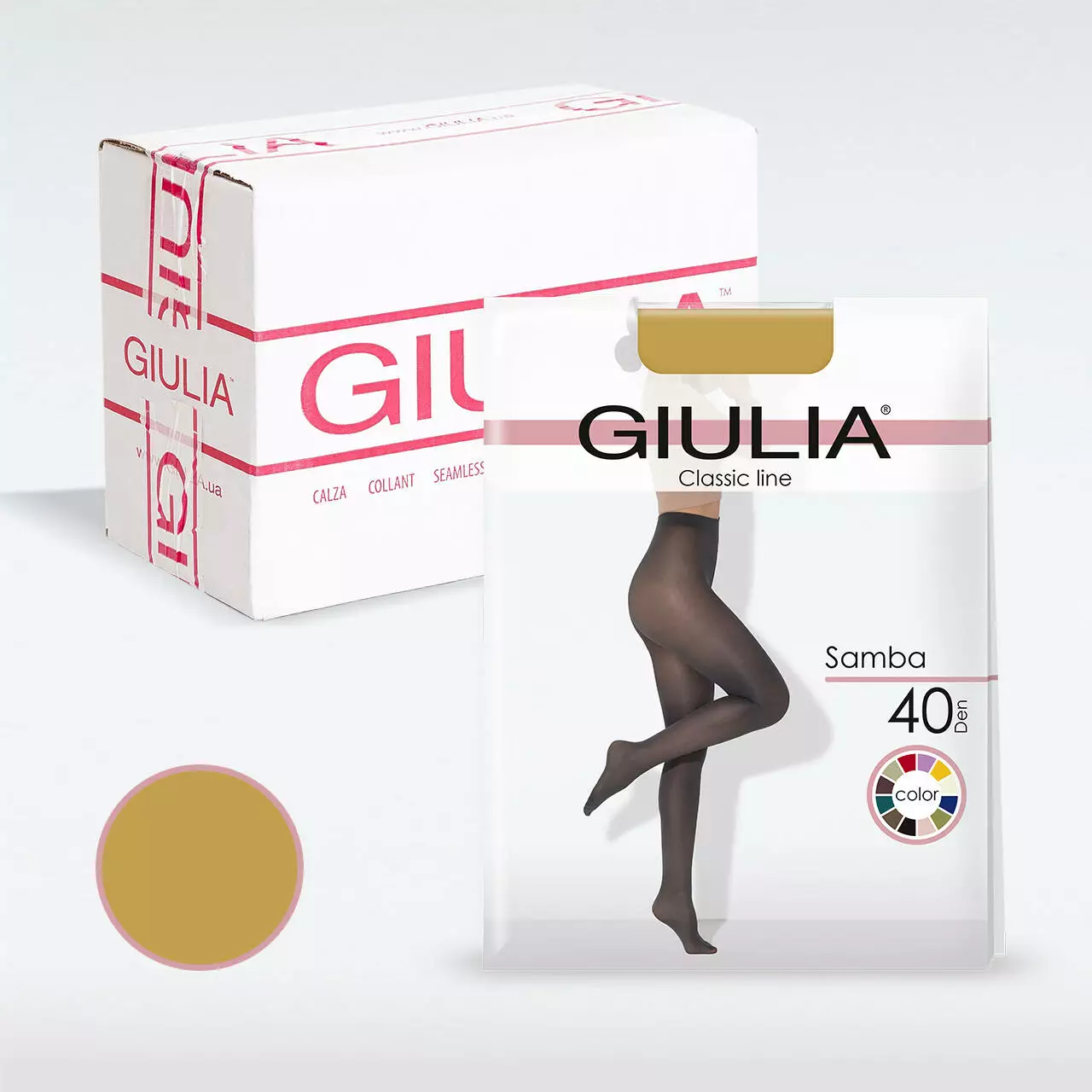 Модель колгот Giulia SAMBA 40 унікальна, бо має широку кольорову палітру для будь-якого образу та настрою. Ці однотонні матові колготки щільністю 40 den не тільки додають яскравих фарб до Вашого гардеробу, але й чудово доповнюють як святкові, так і повсякденні образи. У складі цих колгот збалансоване поєднання поліаміду та еластану дарує виробу м`якість, зносостійкість та гарну розтяжність. Для додаткового комфорту вони мають еластичний пояс та плоскі шви, які невидимі на тілі. Модель без шортиків чудово поєднується з короткими спідницями, сукнями або шортами і може стати ідеальною основою для тотал луку.