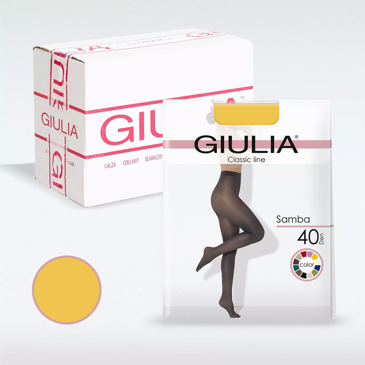 Модель колгот Giulia SAMBA 40 унікальна, бо має широку кольорову палітру для будь-якого образу та настрою. Ці однотонні матові колготки щільністю 40 den не тільки додають яскравих фарб до Вашого гардеробу, але й чудово доповнюють як святкові, так і повсякденні образи. У складі цих колгот збалансоване поєднання поліаміду та еластану дарує виробу м`якість, зносостійкість та гарну розтяжність. Для додаткового комфорту вони мають еластичний пояс та плоскі шви, які невидимі на тілі. Модель без шортиків чудово поєднується з короткими спідницями, сукнями або шортами і може стати ідеальною основою для тотал луку.