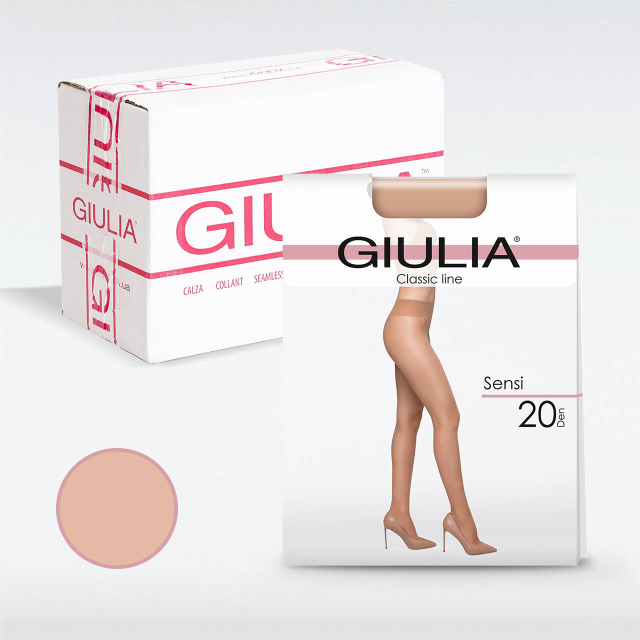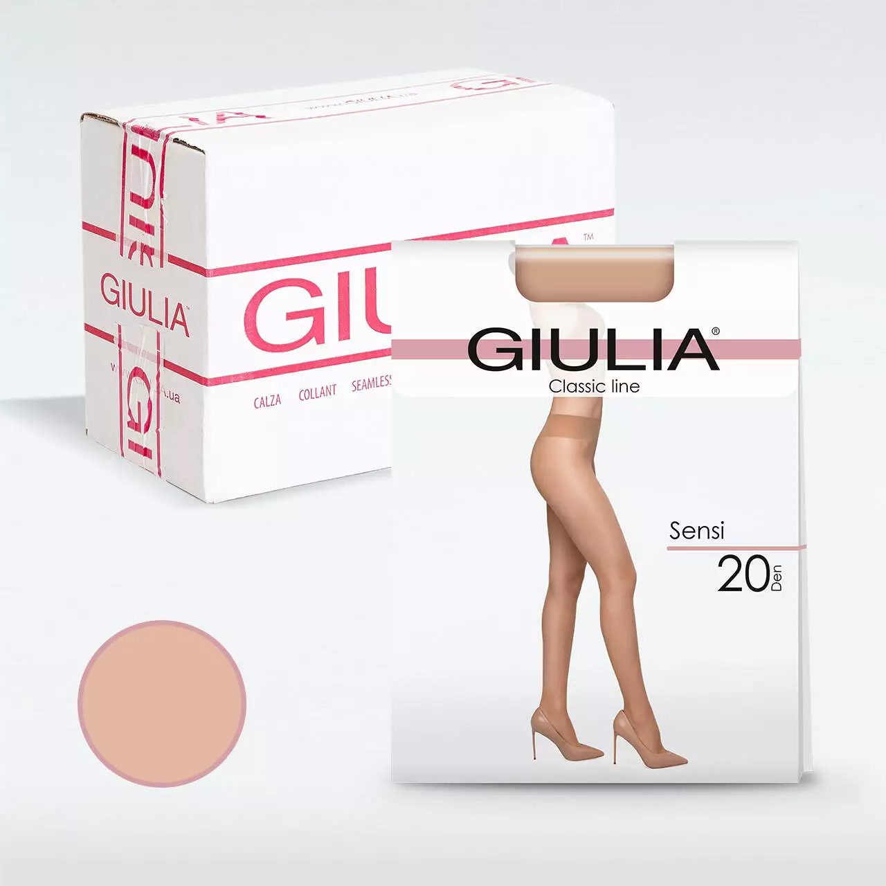 Елегантні колготки із заниженою талією Giulia SENSI VITA BASSA 20 виготовлені з високоякісних матеріалів та мають щільність 20 den, що забезпечує відмінний комфорт. Вони оснащені надзвичайно зручним широким поясом, який ідеально фіксується на стегнах. Це дуже якісні колготи особливі завдяки надміцним і м'яким плоским швам, гігієнічній ластовиці з бавовни для додаткового комфорту і невидимому миску.