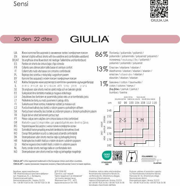 Елегантні колготки із заниженою талією Giulia SENSI VITA BASSA