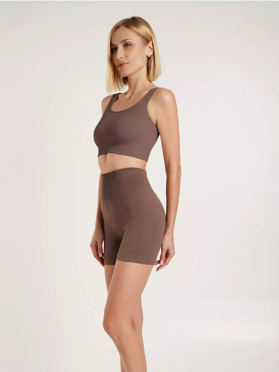 Жіночі безшовні шорти Giulia SHORTS RIB SHAPE ідеально підходять для сучасних жінок, які обожнюють комфорт і стиль у щоденному житті. Ці шорти з мікрофібри, поєднують фактуру у рубчик із трендовою довжиною до середини стегна. Шорти мають високу посадку, що ідеально облягає фігуру, не обмежуючи рухів. Широкий пояс забезпечує додаткову підтримку і зручність під час носіння. Моделюючий шов із ефектом пуш-ап надає фігурі додатковий об'єм і підтягує форми, роблячи ваш образ ще більш привабливим і стильним.