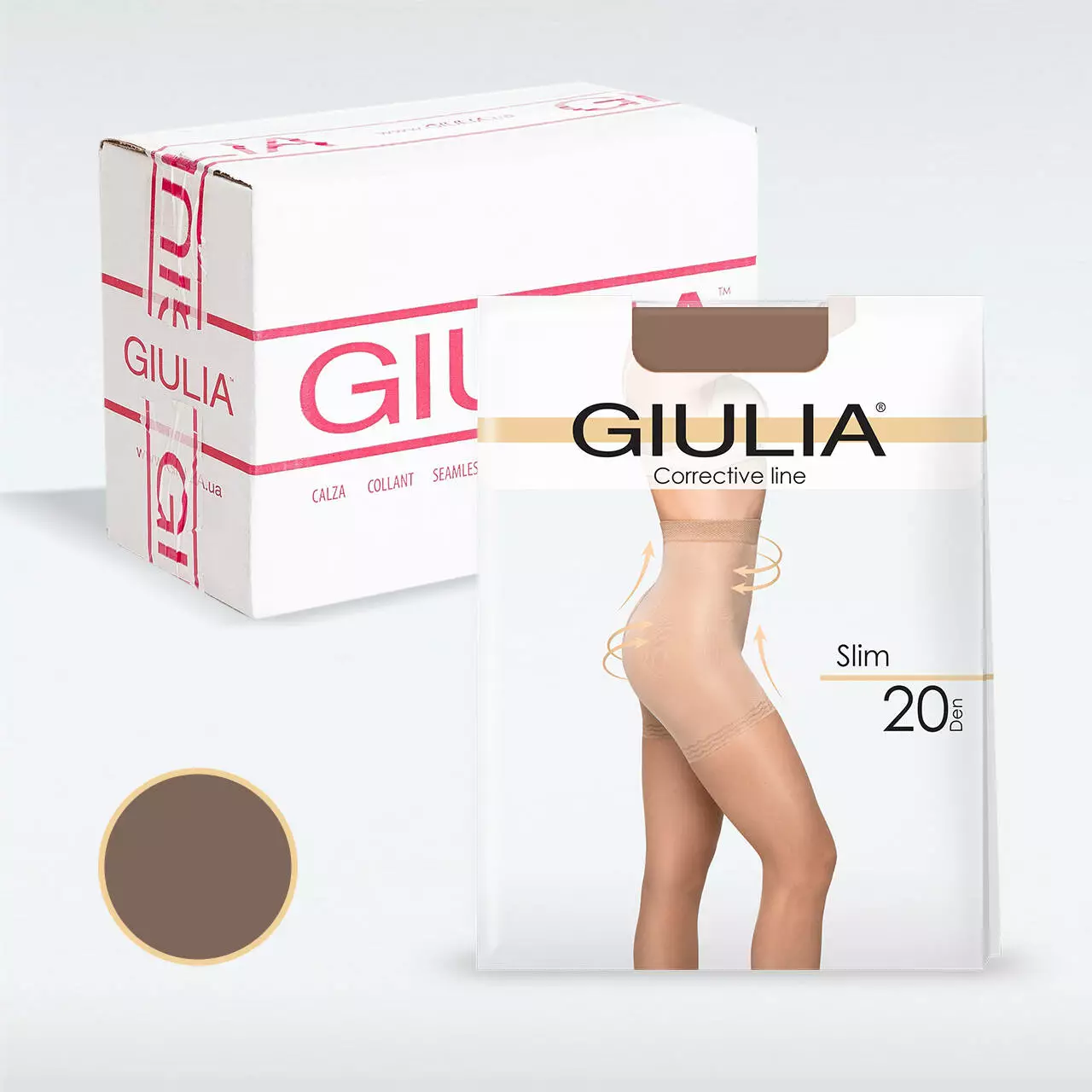 Тонкі жіночі колготки з коригуючими шортиками Giulia SLIM 20 відрізняються змішаною щільністю: основна частина колготок має 20 den, а високі підтягуючі шортики - 150 den. Це забезпечує відмінне підтягування і моделювання фігури в області стегон, сідниць, талії, живота і боків. Модель має гладку, матову і еластичну поверхню. Шортики оснащені міцною, м'якою і широкою еластичною резинкою вгорі, що забезпечує комфортне і надійне фіксування. Також присутні комфортні плоскі шви і бавовняна ластовиця для додаткового комфорту і гігієни.