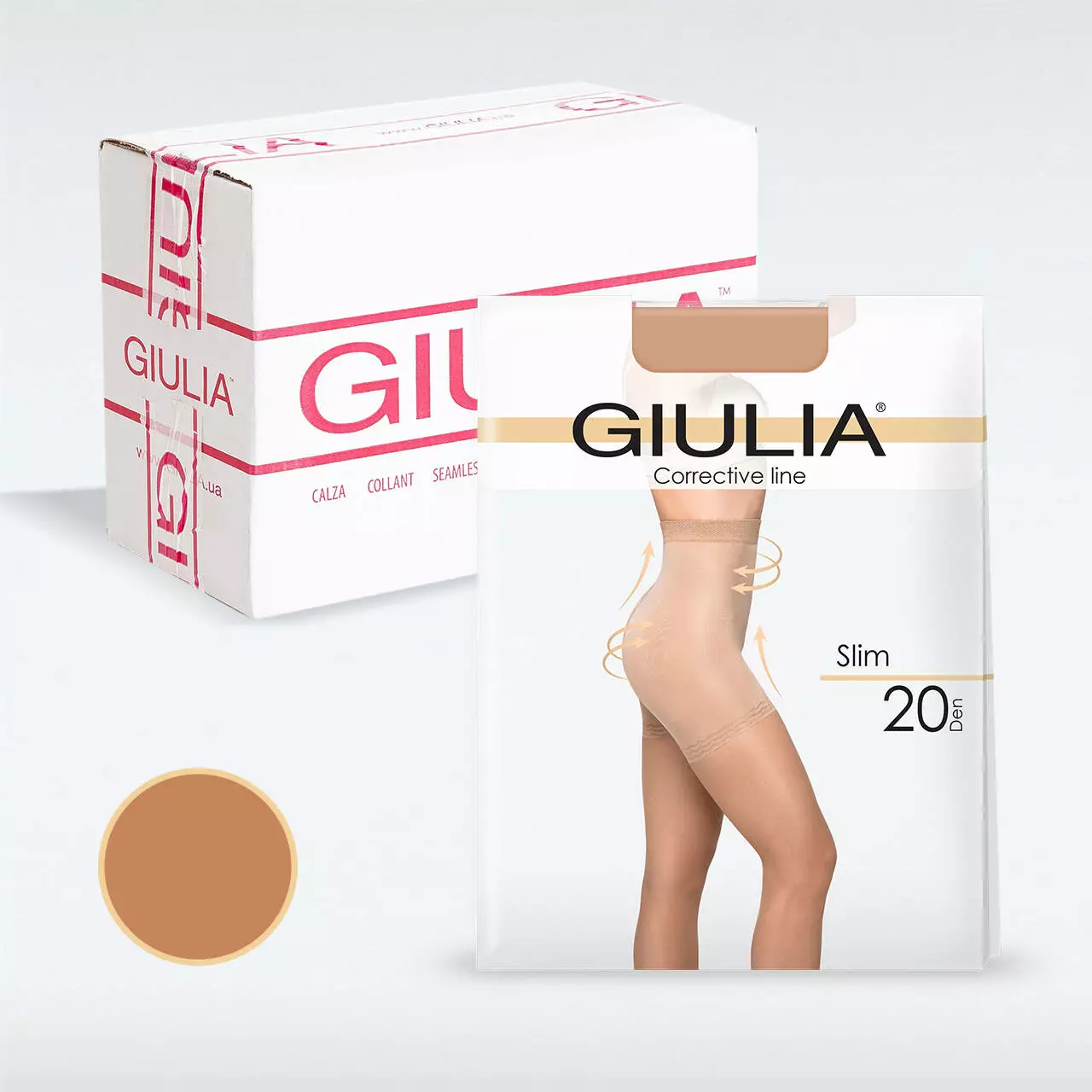 Тонкі жіночі колготки з коригуючими шортиками Giulia SLIM 20 відрізняються змішаною щільністю: основна частина колготок має 20 den, а високі підтягуючі шортики - 150 den. Це забезпечує відмінне підтягування і моделювання фігури в області стегон, сідниць, талії, живота і боків. Модель має гладку, матову і еластичну поверхню. Шортики оснащені міцною, м'якою і широкою еластичною резинкою вгорі, що забезпечує комфортне і надійне фіксування. Також присутні комфортні плоскі шви і бавовняна ластовиця для додаткового комфорту і гігієни.