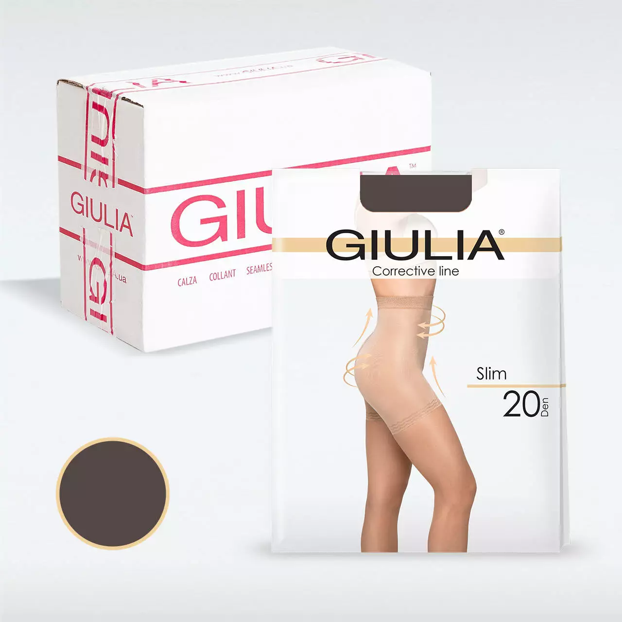 Тонкі жіночі колготки з коригуючими шортиками Giulia SLIM 20 відрізняються змішаною щільністю: основна частина колготок має 20 den, а високі підтягуючі шортики - 150 den. Це забезпечує відмінне підтягування і моделювання фігури в області стегон, сідниць, талії, живота і боків. Модель має гладку, матову і еластичну поверхню. Шортики оснащені міцною, м'якою і широкою еластичною резинкою вгорі, що забезпечує комфортне і надійне фіксування. Також присутні комфортні плоскі шви і бавовняна ластовиця для додаткового комфорту і гігієни.