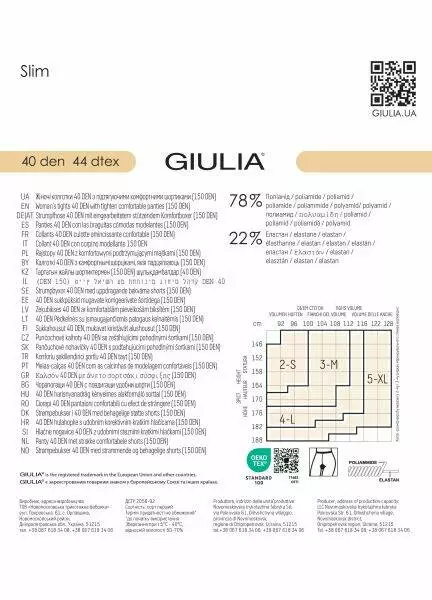 Колготки Giulia SLIM 40 щільністю 40 den виготовлені з якісних