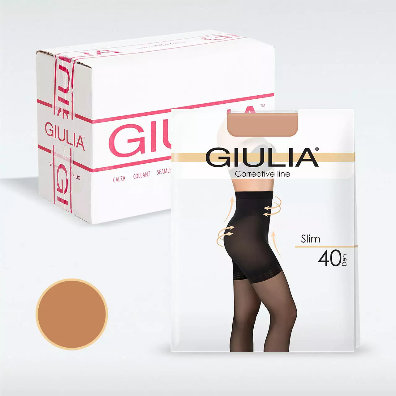Колготки Giulia SLIM 40 щільністю 40 den виготовлені з якісних синтетичних волокон. Колготки з високою посадкою та шортиками - 150 den, які надають додаткову підтримку і забезпечують ідеальну посадку на талії. Однотонний дизайн робить ці колготки універсальними для будь-якого образу, додаючи стильності та елегантності.