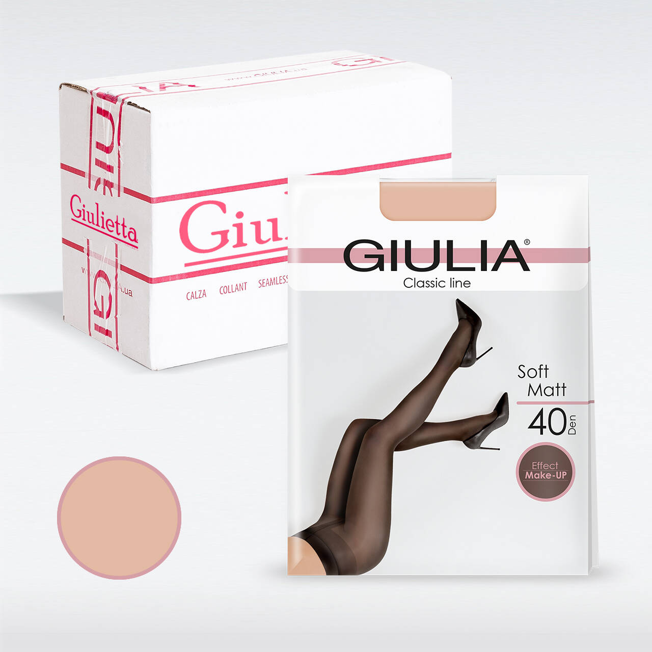 Модель Giulia Soft Matt виготовлена за технологією 3D-плетіння, що забезпечує матову текстуру та ефект «make up». Колготки мають рівномірну щільність по всій довжині та подвійне обплетення нитки для більшої міцності.