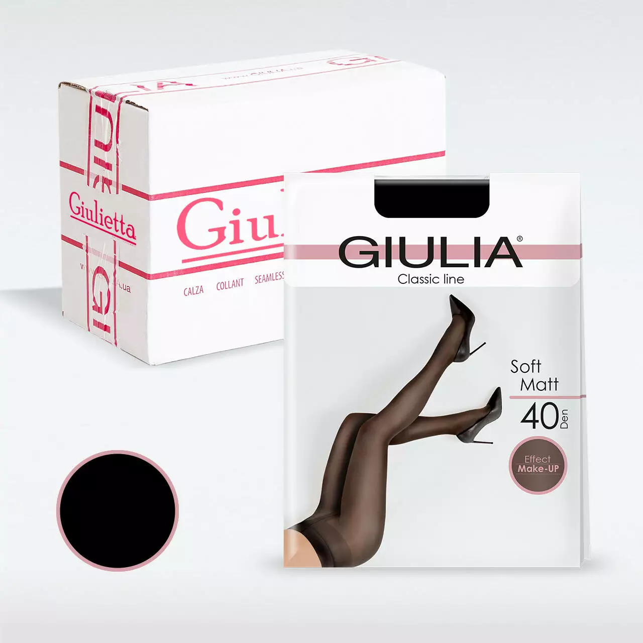 Модель Giulia Soft Matt виготовлена за технологією 3D-плетіння, що забезпечує матову текстуру та ефект «make up». Колготки мають рівномірну щільність по всій довжині та подвійне обплетення нитки для більшої міцності.