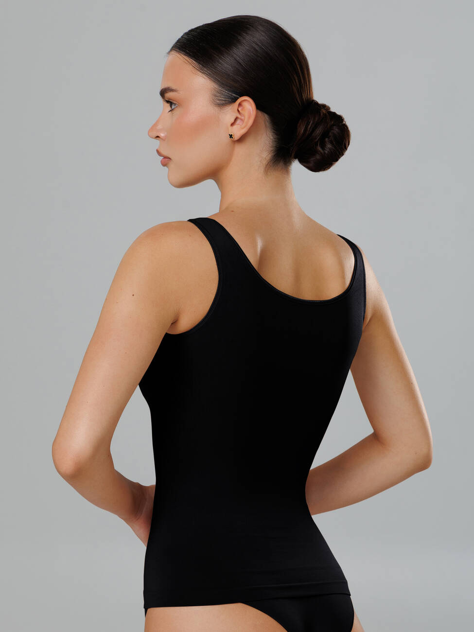 Майка з широкими бретелями із мікрофібри та декоративним кантом.
